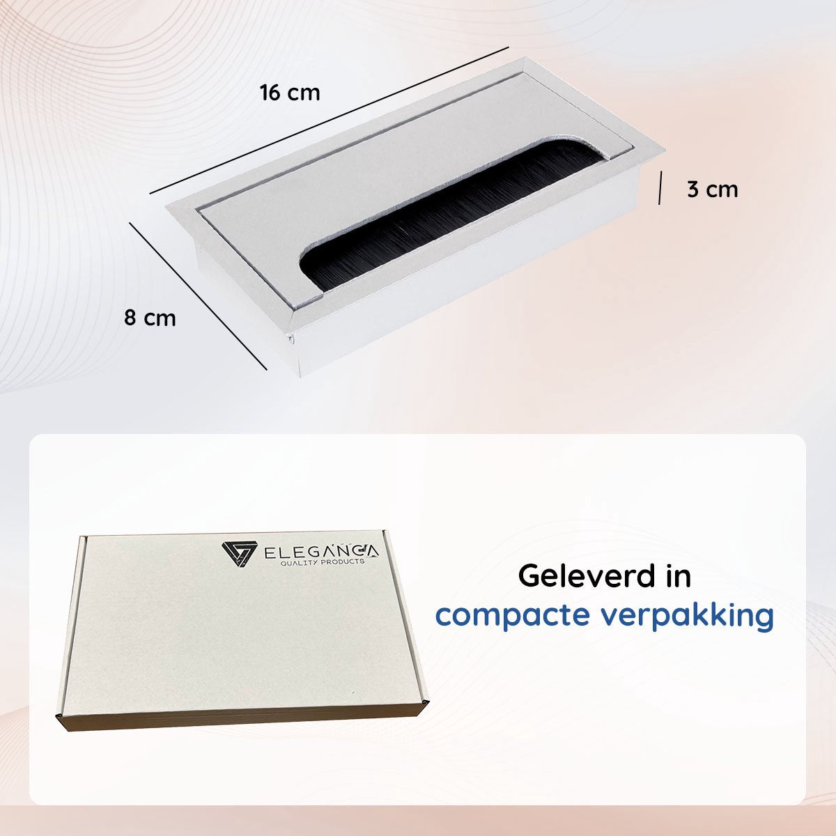Eleganca Kabeldoorvoer – Kabelgat voor Bureau – Met Borstelafsluiting – 16x8cm - Kabel Organiser – Kabelpot – Kabelgoot Rechthoekig – Aluminium - Zilver - 2 Stuks