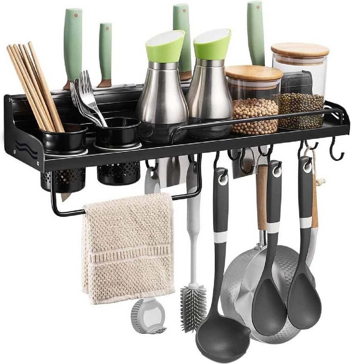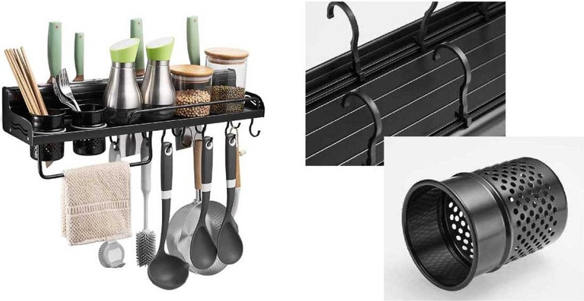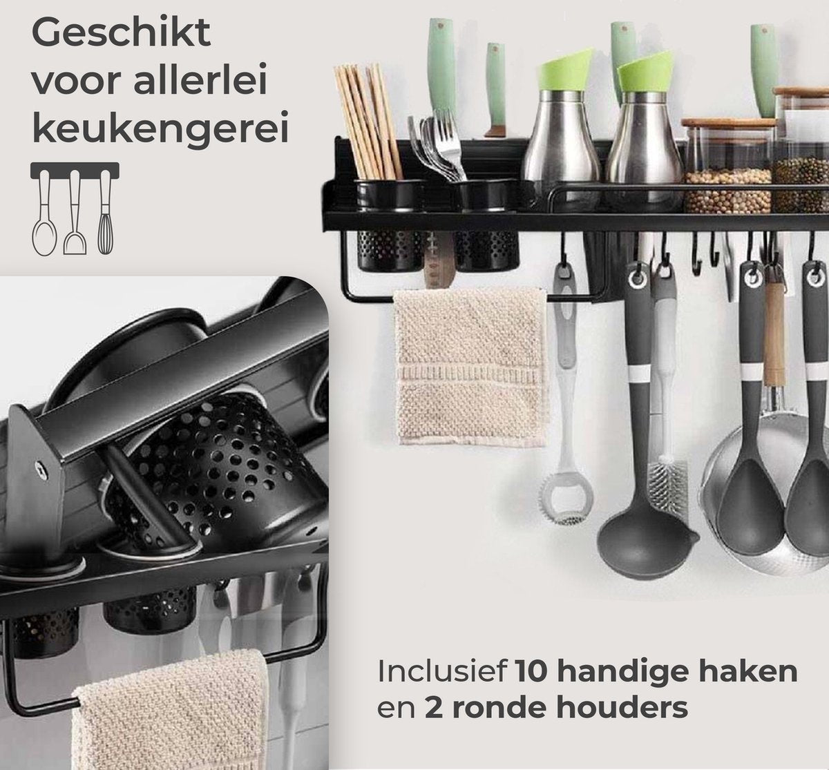 Eleganca keuken wandrek - keuken organizer - modern keuken wandrek met haken - keukenwandopberger voor allerlei keukengerei - 80x14x8,5cm