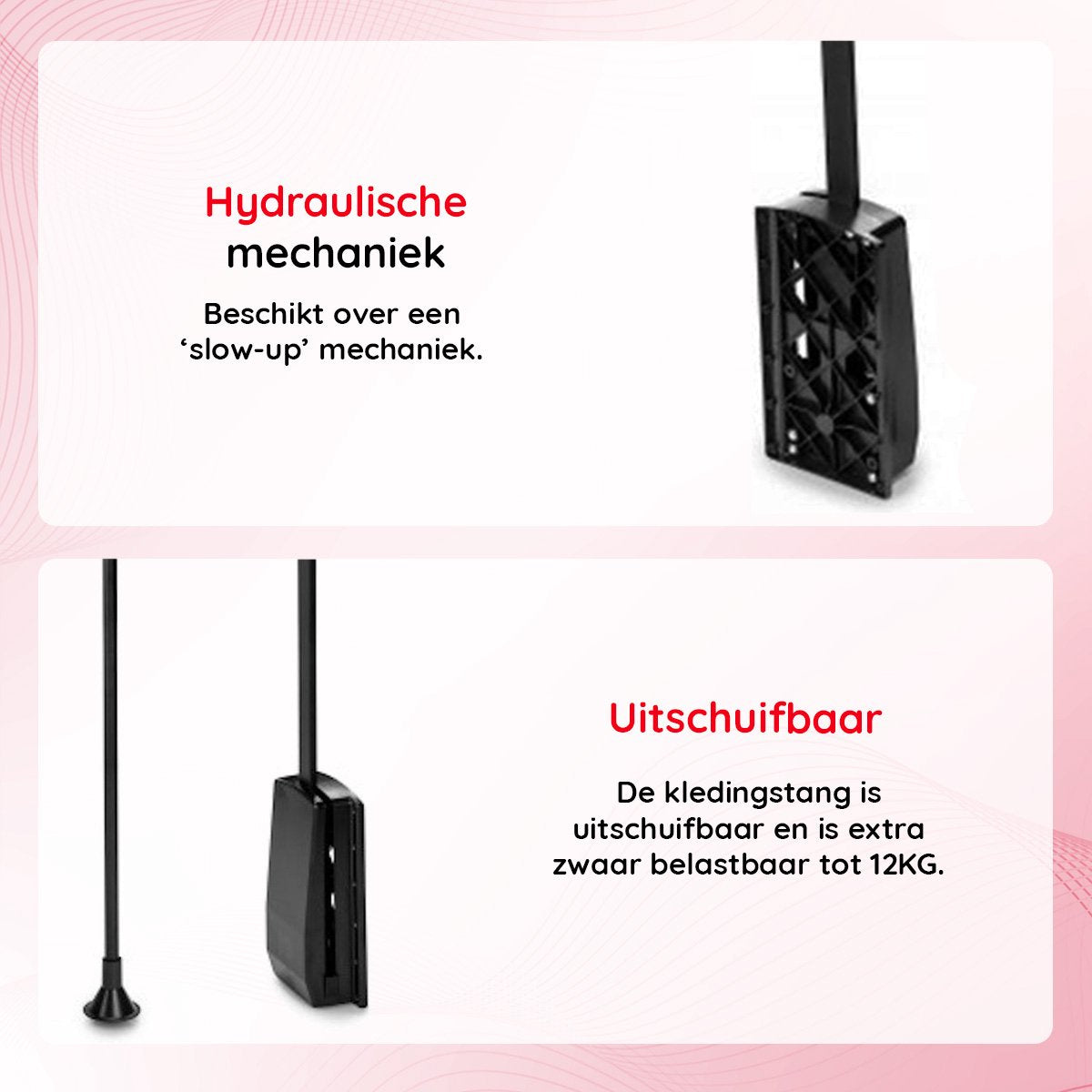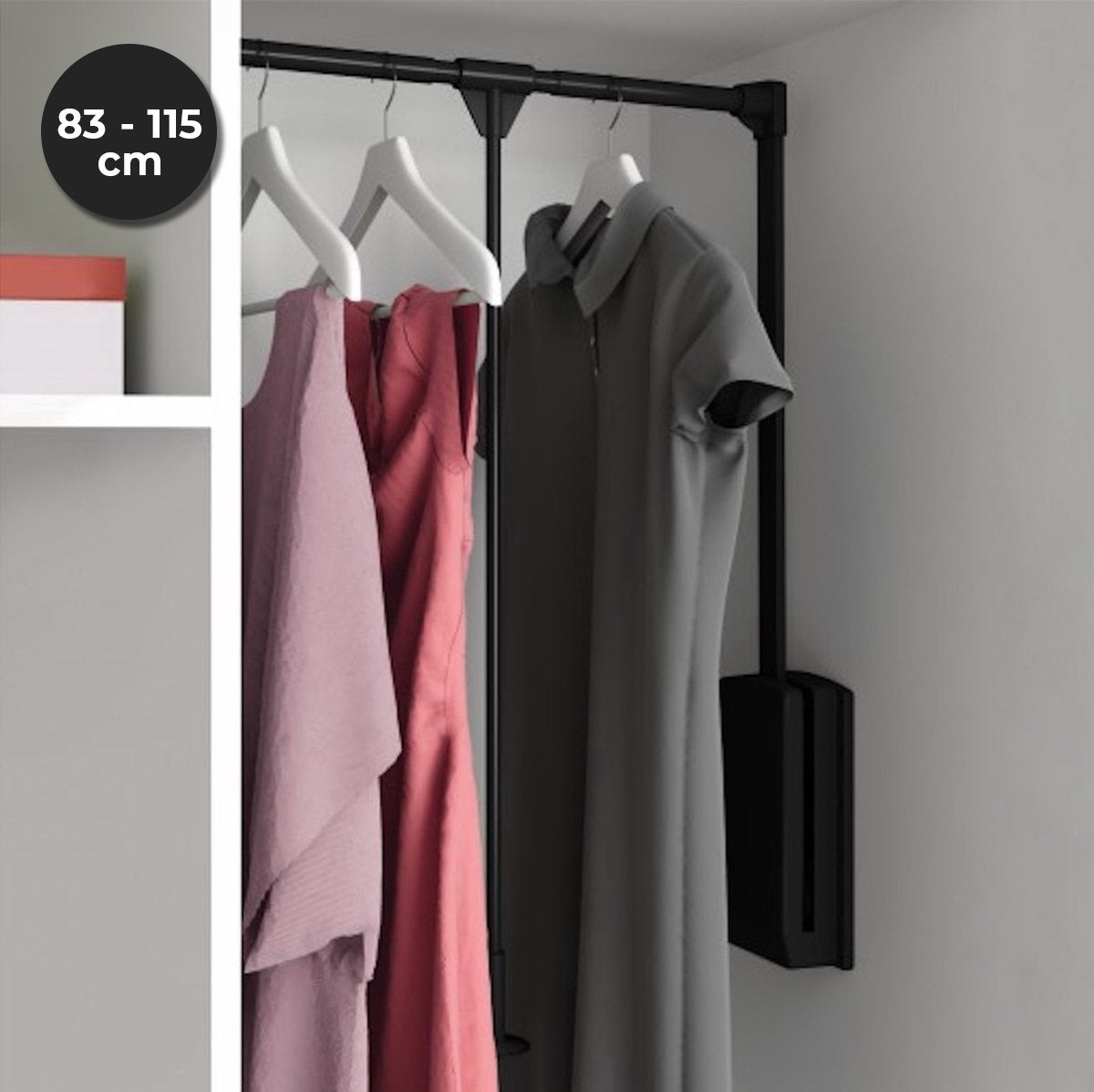 Eleganca Kledinglift Kledingstang - 83 tot 115cm Breed - Hoge kwaliteit Kledingroede - Uittrekbare Garderobestang - Extra stevige garderobelift - Zwart – 12kg