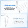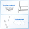 Het kledingrek optimaliseert de beschikbare ruimte met een compact ontwerp, ideaal voor kleine kamers en appartementen, waardoor efficiënt gebruik wordt gemaakt van de beschikbare ruimte.