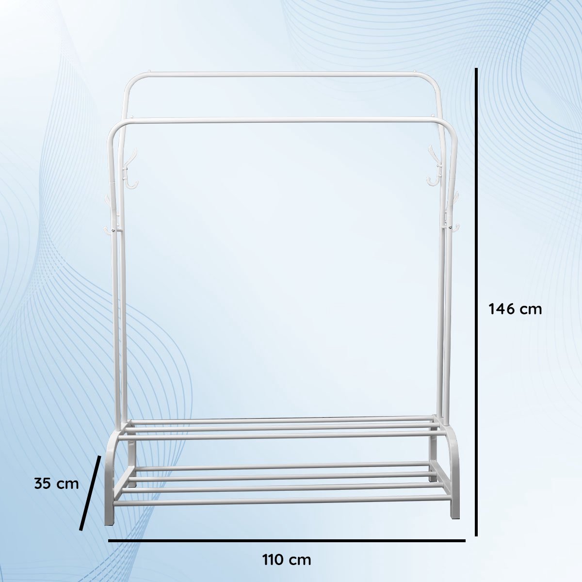 Eleganca Kledingrek - H148 x B110 x D33 cm - Kledingstang - Dressboy - Eenvoudig Kleding Ophangen - Garderoberek met ophanghaken - 8 Ophanghaken en 2 Stangen - Metaal - Wit
