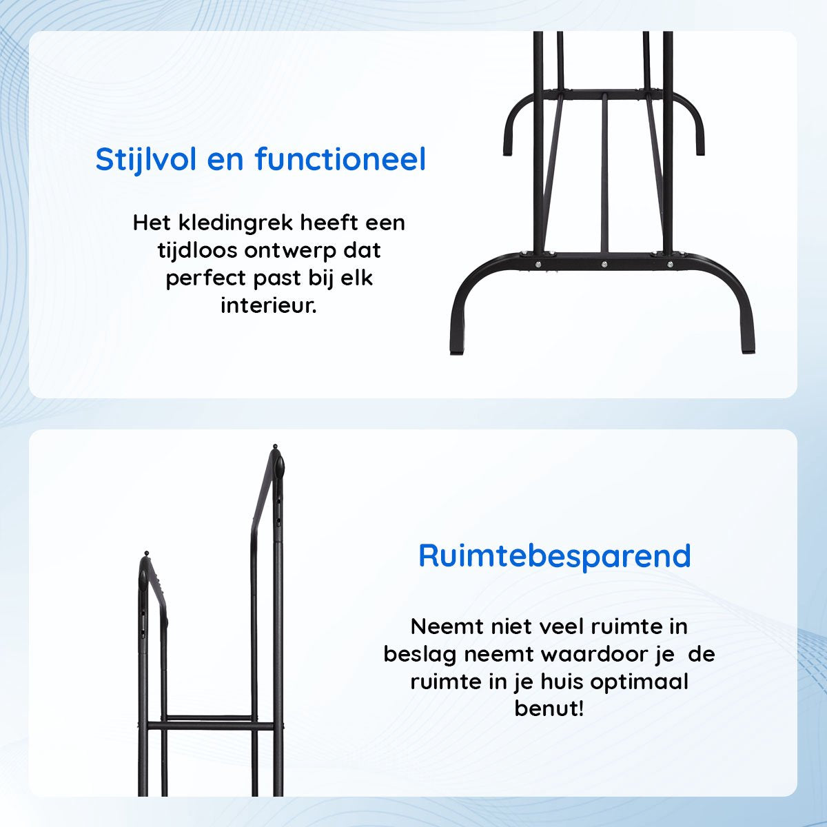 Het kledingrek heeft een tijdloos ontwerp dat perfect past bij elk interieur. Het biedt niet alleen een praktische oplossing voor het opbergen van kleding, maar voegt ook een stijlvolle uitstraling toe aan elke ruimte.