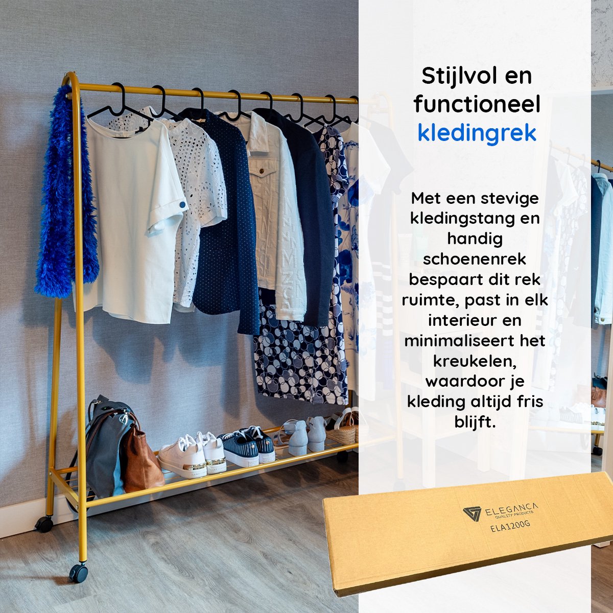 Het kledingrek van Eleganca is een praktische oplossing om kleding overzichtelijk op te hangen!