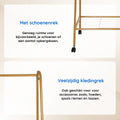 Het kledingrek optimaliseert de beschikbare ruimte met een compact ontwerp, ideaal voor kleine kamers en appartementen, waardoor efficiënt gebruik wordt gemaakt van de beschikbare ruimte.