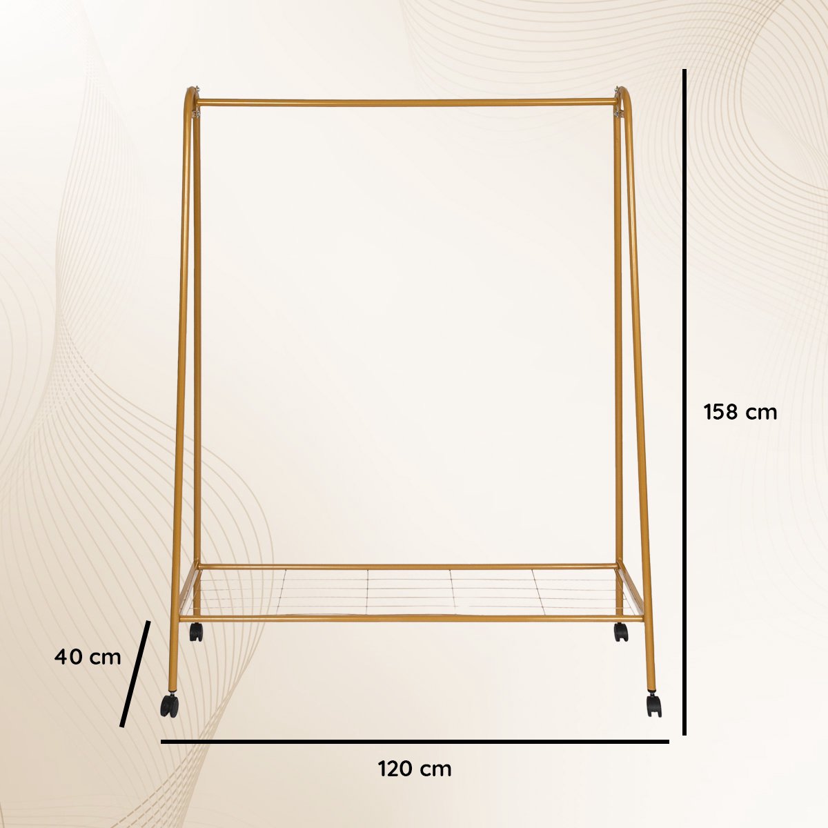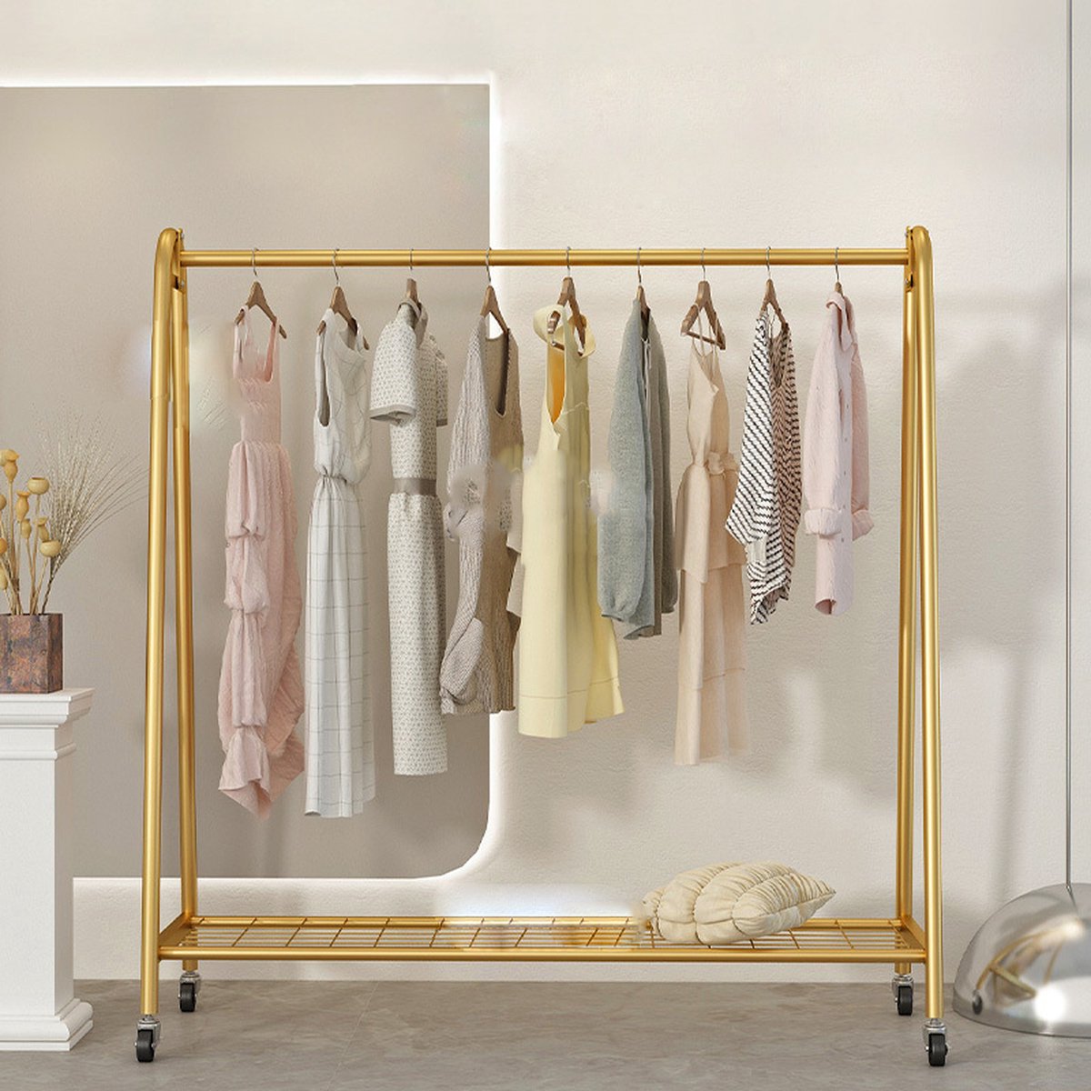 Eleganca Kledingrek op wieltjes - H158 x B120 x D40 cm - Kledingstang - Dressboy - Kledingrek metaal - Garderoberek - Stevig - Goud