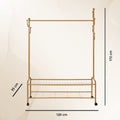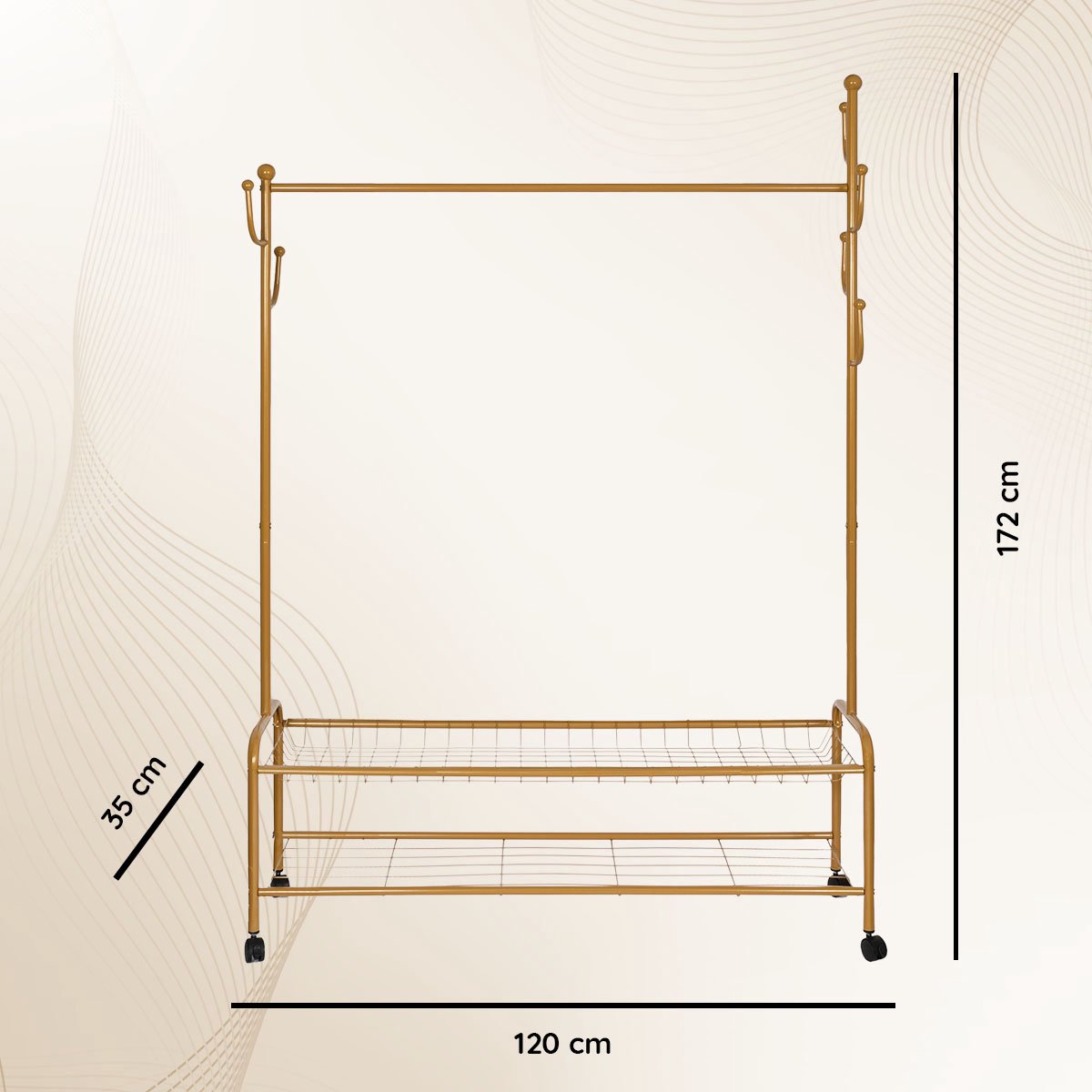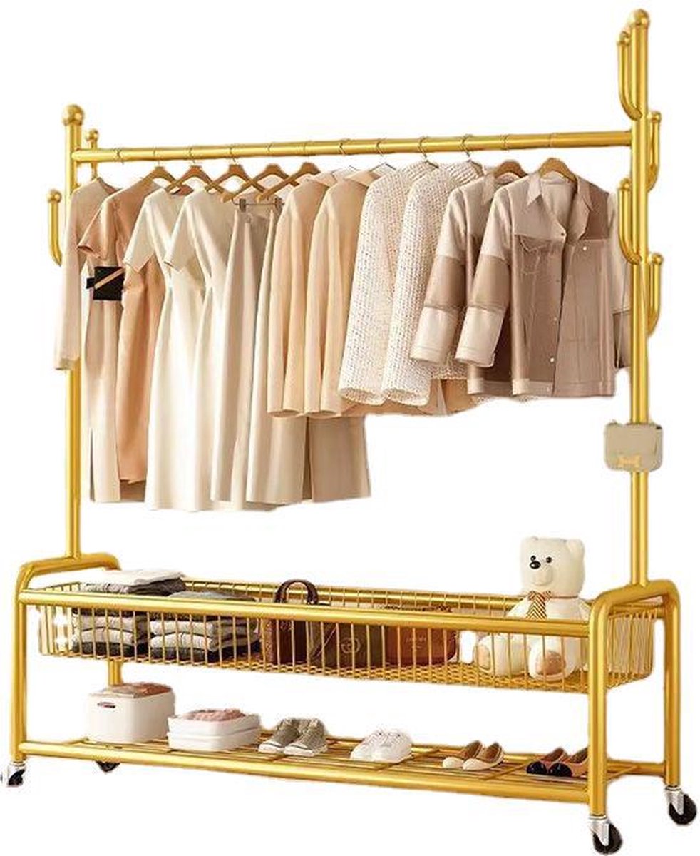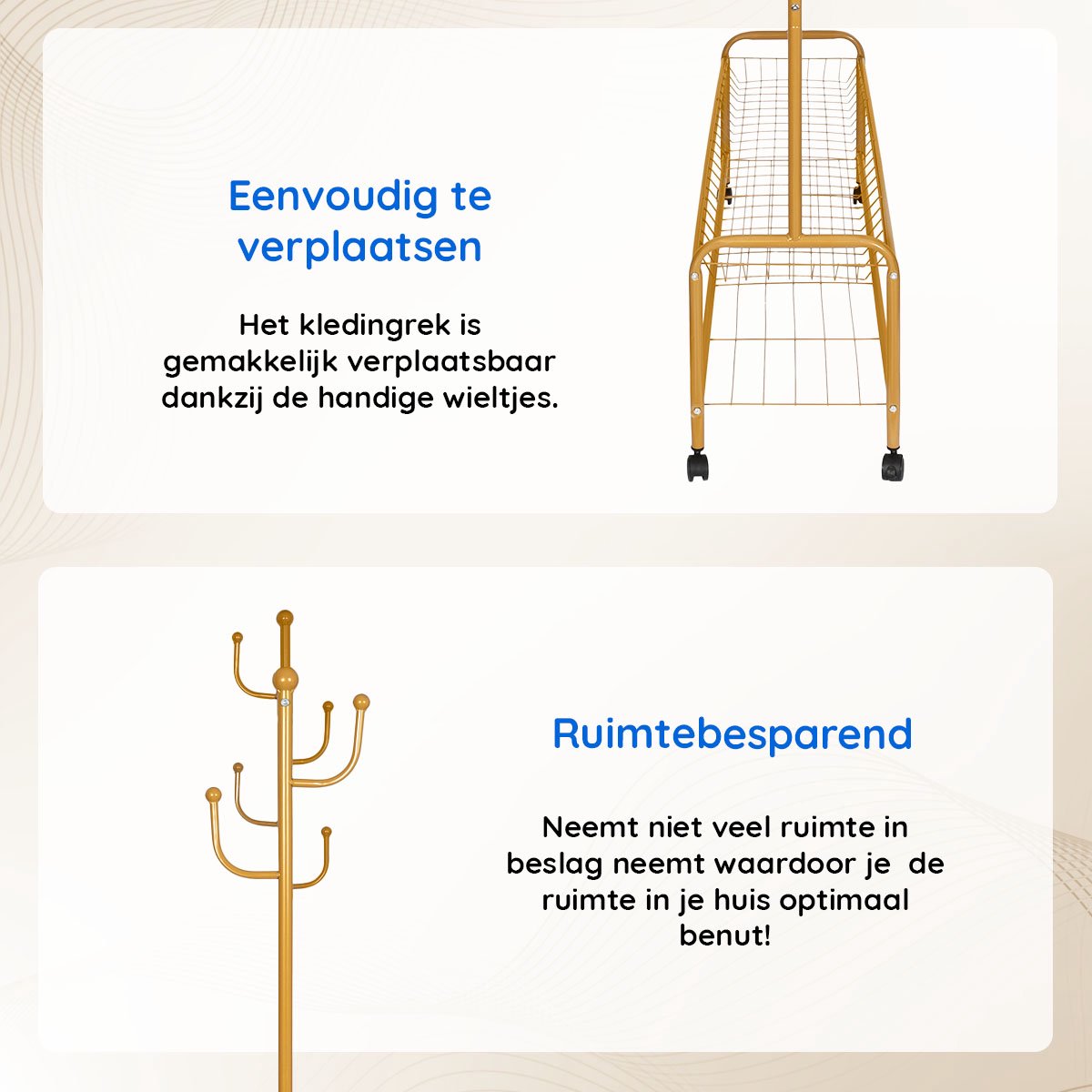Eleganca Kledingrek op wieltjes - H172 x B120 x D35 cm - Kledingstang - Dressboy - Kledingrek metaal - Garderoberek met ophanghaken - 6 Ophanghaken - Stevig - Goud