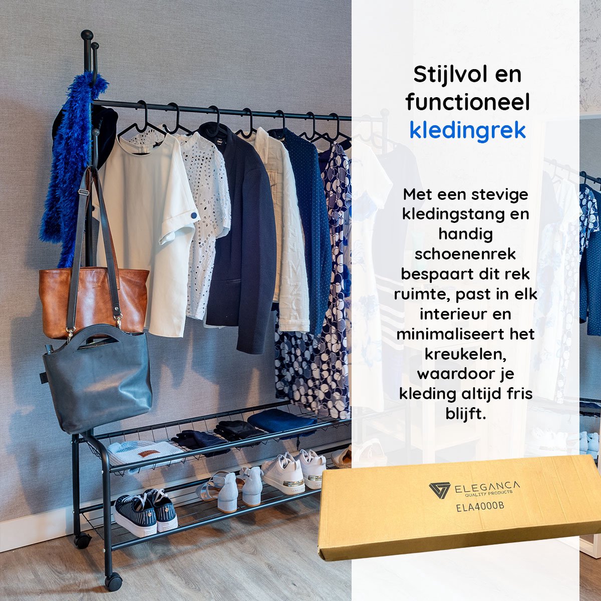 Het kledingrek van Eleganca is een praktische oplossing om kleding overzichtelijk op te hangen!