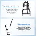 Het kledingrek optimaliseert de beschikbare ruimte met een compact ontwerp, ideaal voor kleine kamers en appartementen, waardoor efficiënt gebruik wordt gemaakt van de beschikbare ruimte.