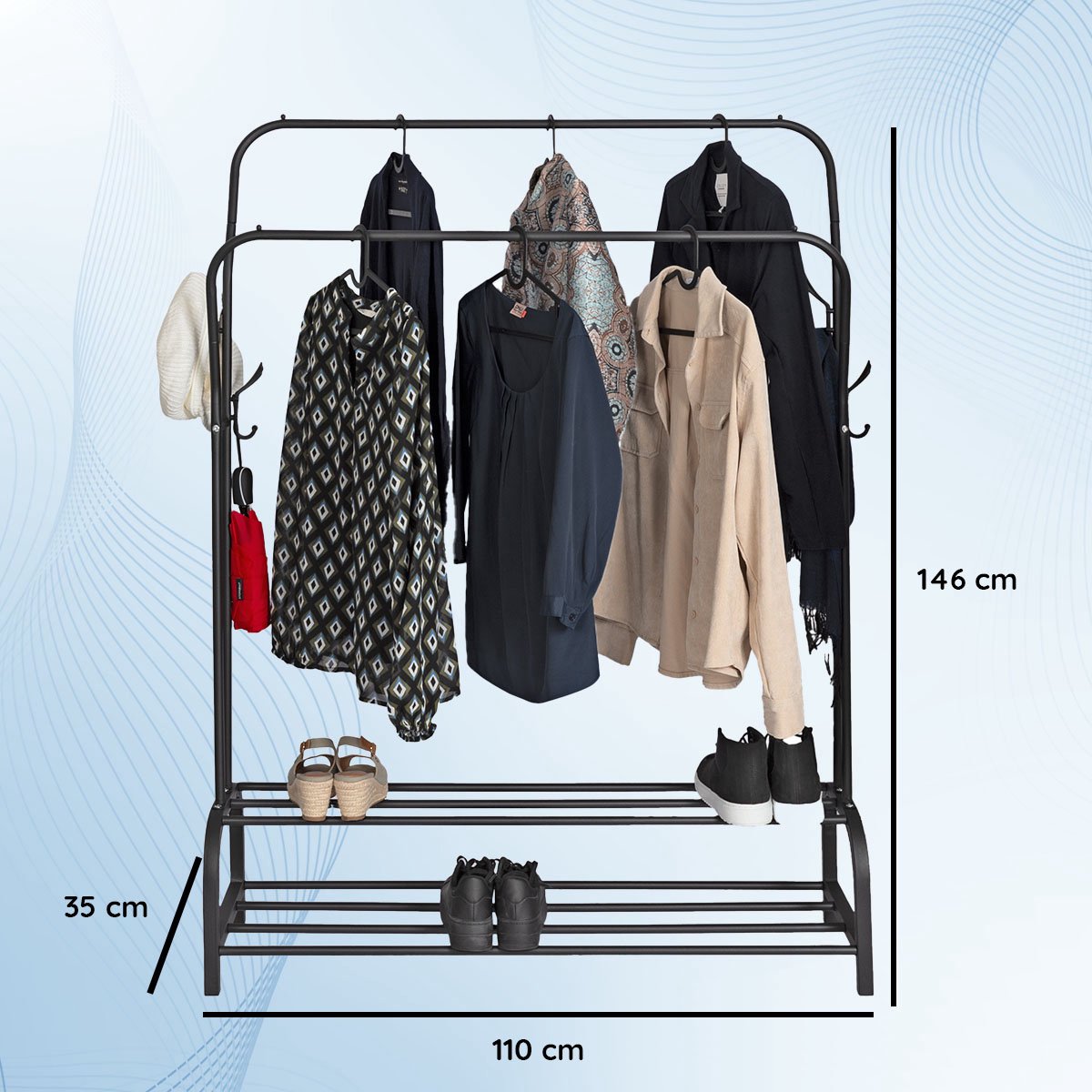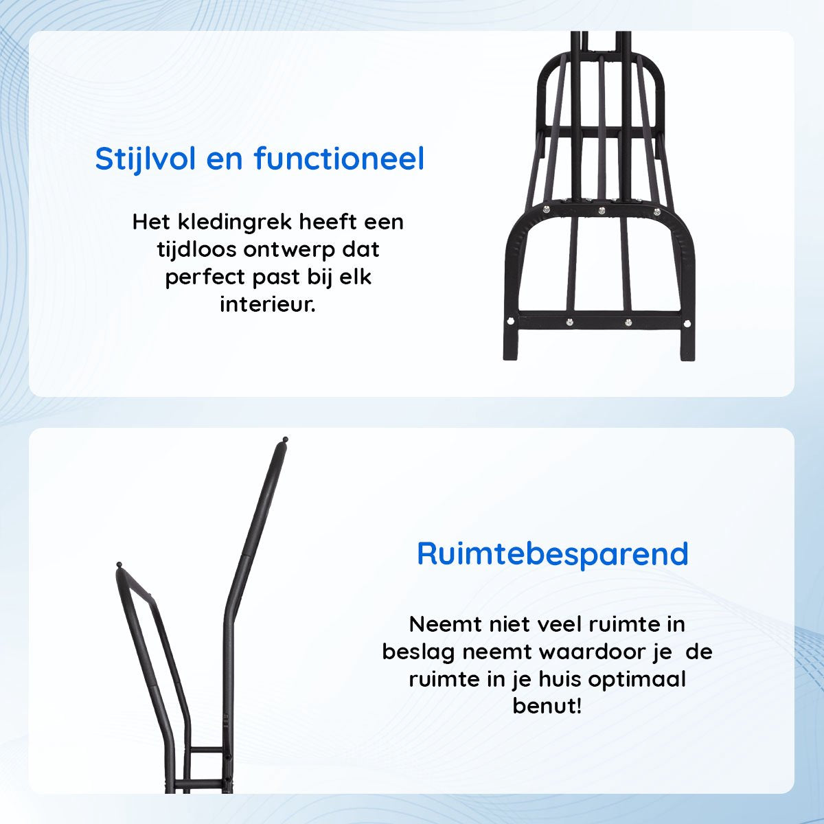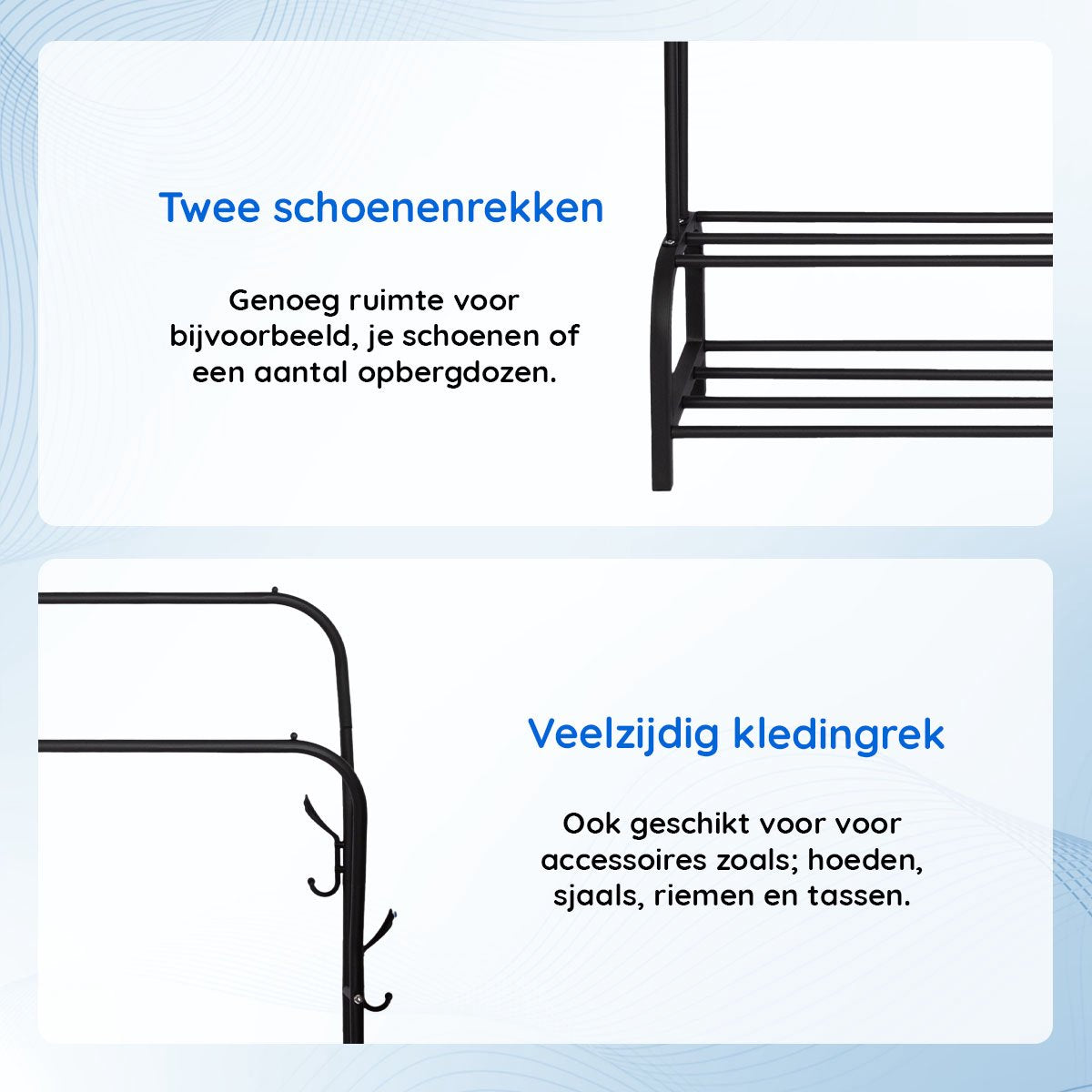 Eleganca Kledingrek zwart - H148 x B110 x D33 cm - Kledingrek metaal - Dressboy - Eenvoudig Kleding Ophangen - Garderoberek met ophanghaken - Stevige kledingrekken