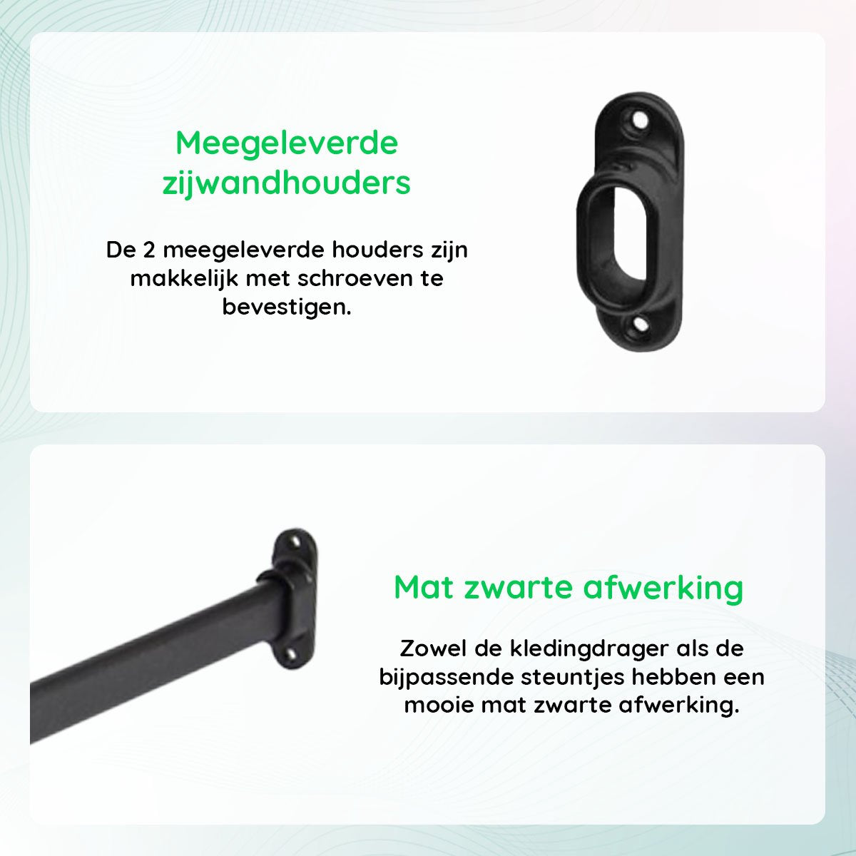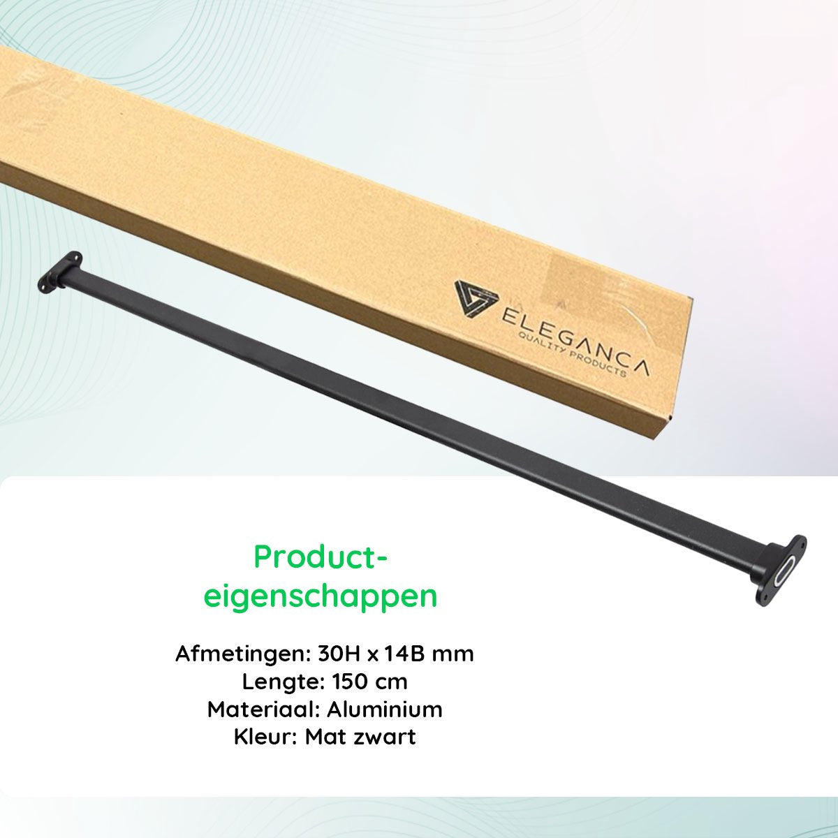 Eleganca Kledingstang 1.5 m – Kledingroede – Extra stevig Aluminium – Garderobestang – Kledingstang – Inclusief Kastroededragers en Schroeven - Zwart