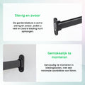 Deze ovaal zwarte aluminium kledingroede, inclusief kastroededragers, draagt bij aan een nette en overzichtelijke kledingkast met een luxe uitstraling. Deze fraaie Eleganca kledingstang – kledingroede – extra sterk zwart aluminium – ophangen van kleding – 1,2m – inclusief kastroededragers is eenvoudig te monteren in kledingkasten, met een minimale wanddikte van 16mm. Door de luxe mat zwarte afwerking kan de roede ook gebruikt worden in een inloopkast en fungeert deze goed als garderobestang voor zware jassen. De garderobebuis is extra stevig en zwaar, zodat u veel en zware kleding op de kleerstang kunt ophangen. Zowel de kledingdrager als de bijpassende steuntjes hebben een mooie mat zwarte afwerking. De 2 meegeleverde zijwandhouders zijn makkelijk met schroeven te bevestigen en zorgen ervoor dat de kleerstang snel en makkelijk te monteren is.