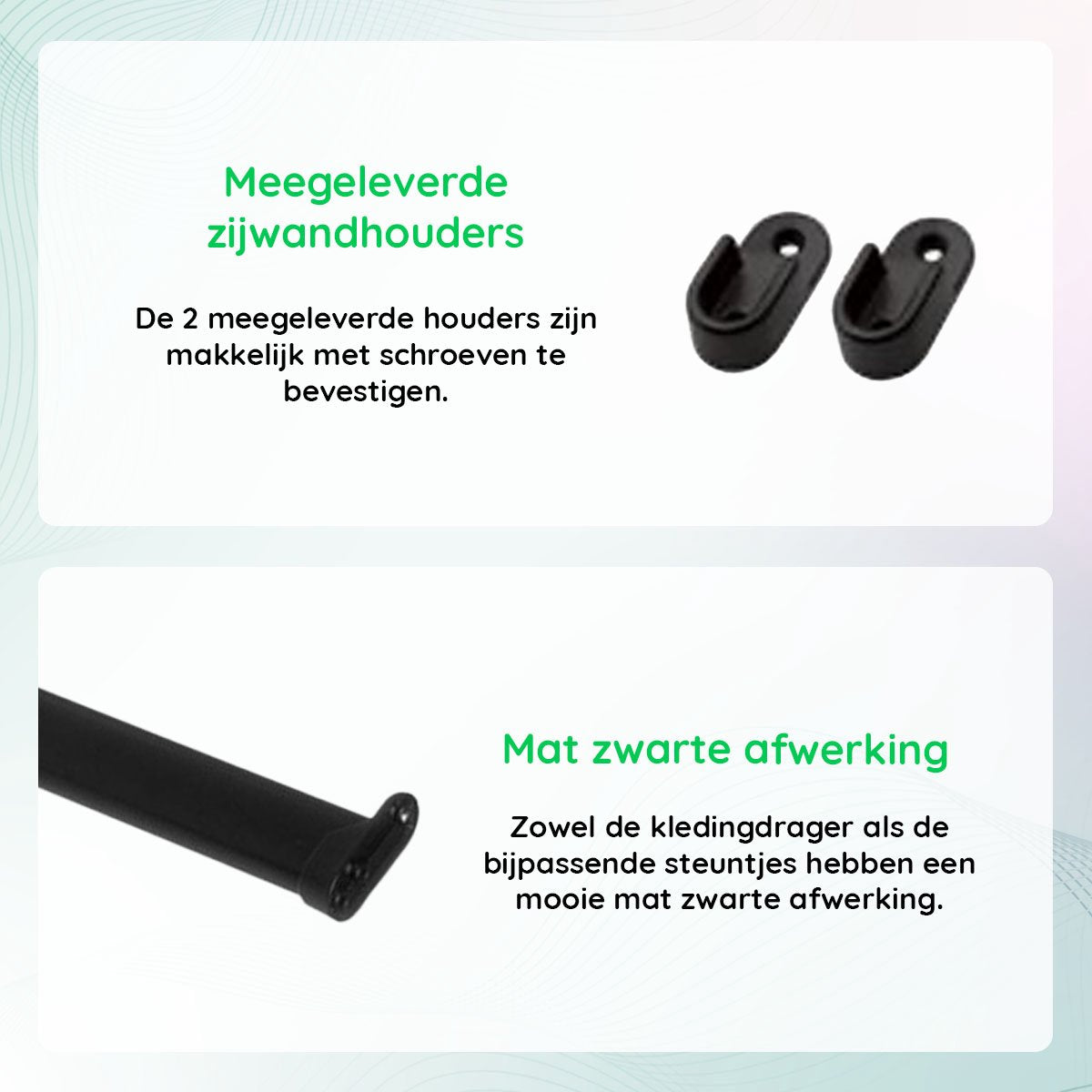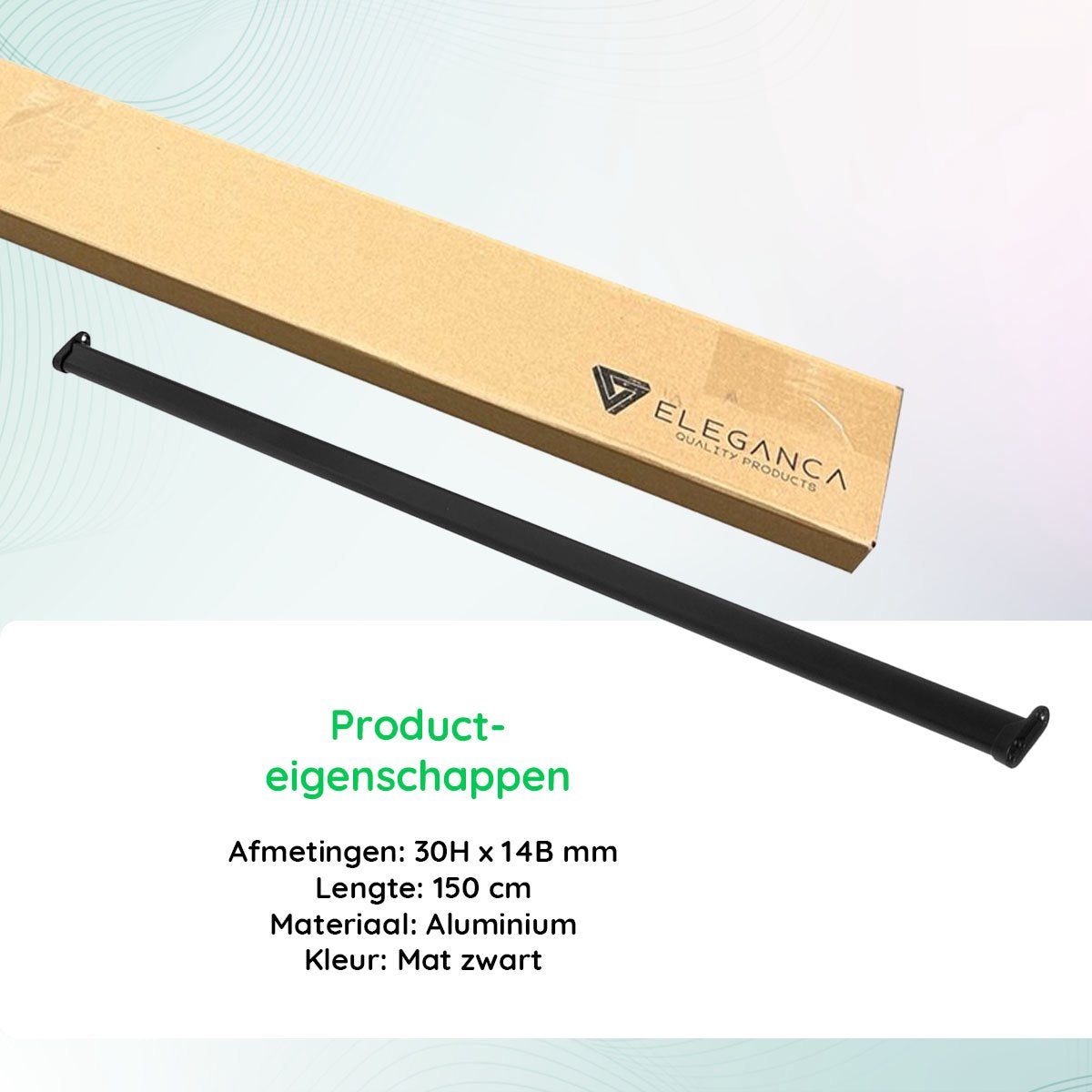 Eleganca Kledingstang 150 cm – Kledingroede – Stevig Aluminium – Garderobestang - Kledingstangen voor aan de muur – Inclusief Kastroededragers en Schroeven - Zwart