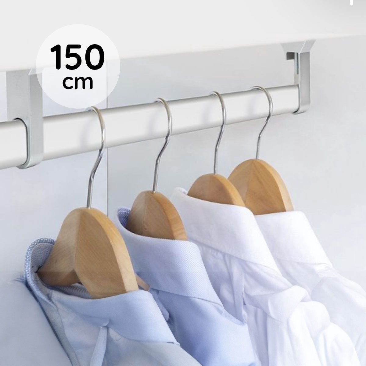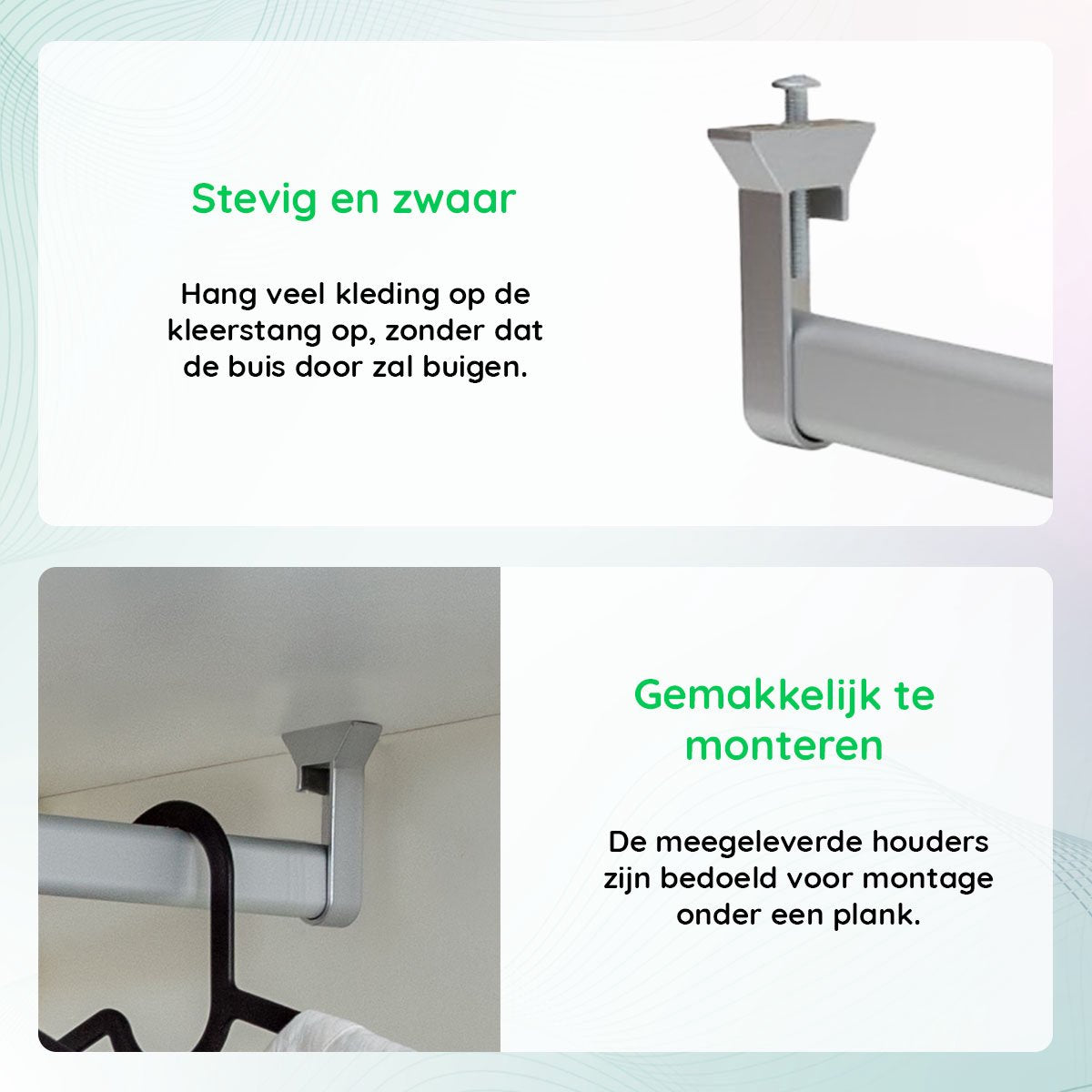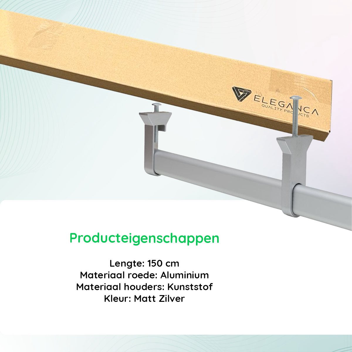 Eleganca Kledingstang – 150 cm – Kledingroede – Stevig Zilver Aluminium – Montage onder plank - Garderobestang – Kledingrek – Kleerhanger – Garderobebuis – Inclusief 2 Kastroededragers & 1 midden houder – Zilver