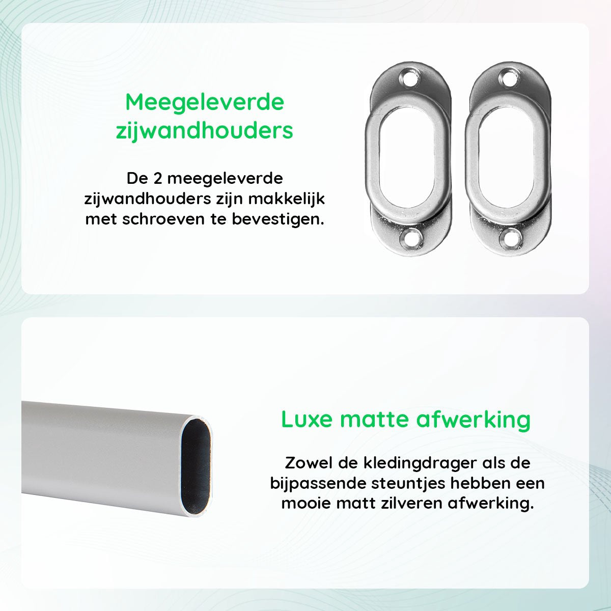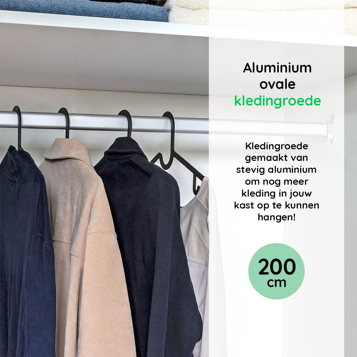 - Zware ovale kledingroede, buigt bij een gemiddelde tot zware belasting niet door