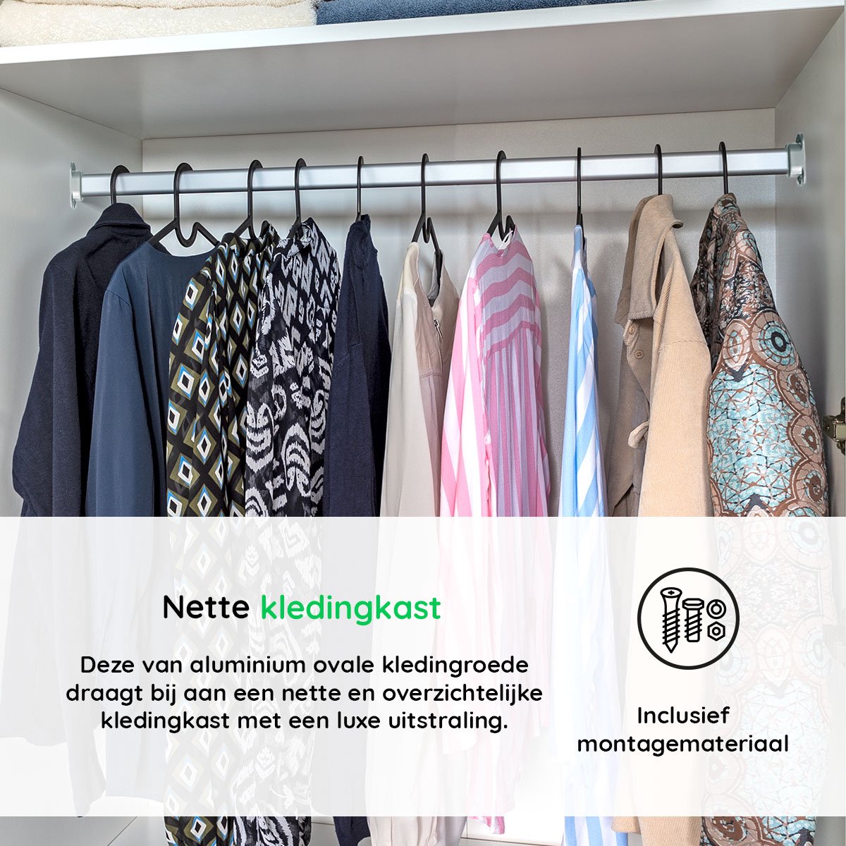 - Kledingroede inclusief, eenvoudig te monteren, bijpassende kastroededragers (2 dragers)