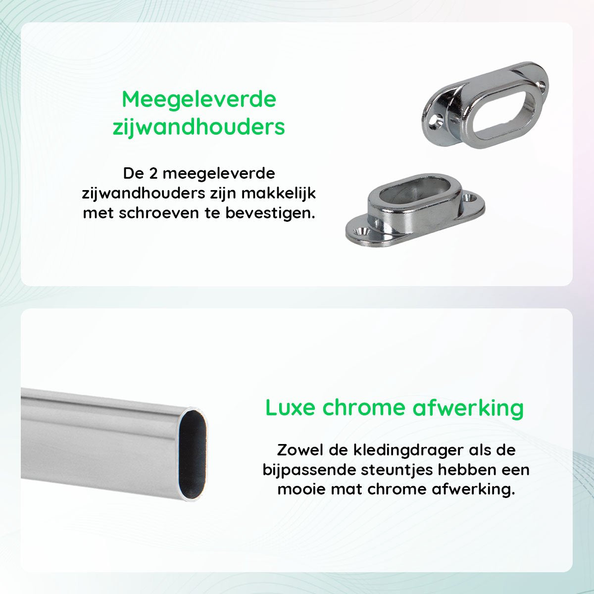 Eleganca Kledingstang 200 cm - Kledingroede - Extra stevig - Garderobestang – Kledingstang - Inclusief kastroededragers en schroeven - Chroom