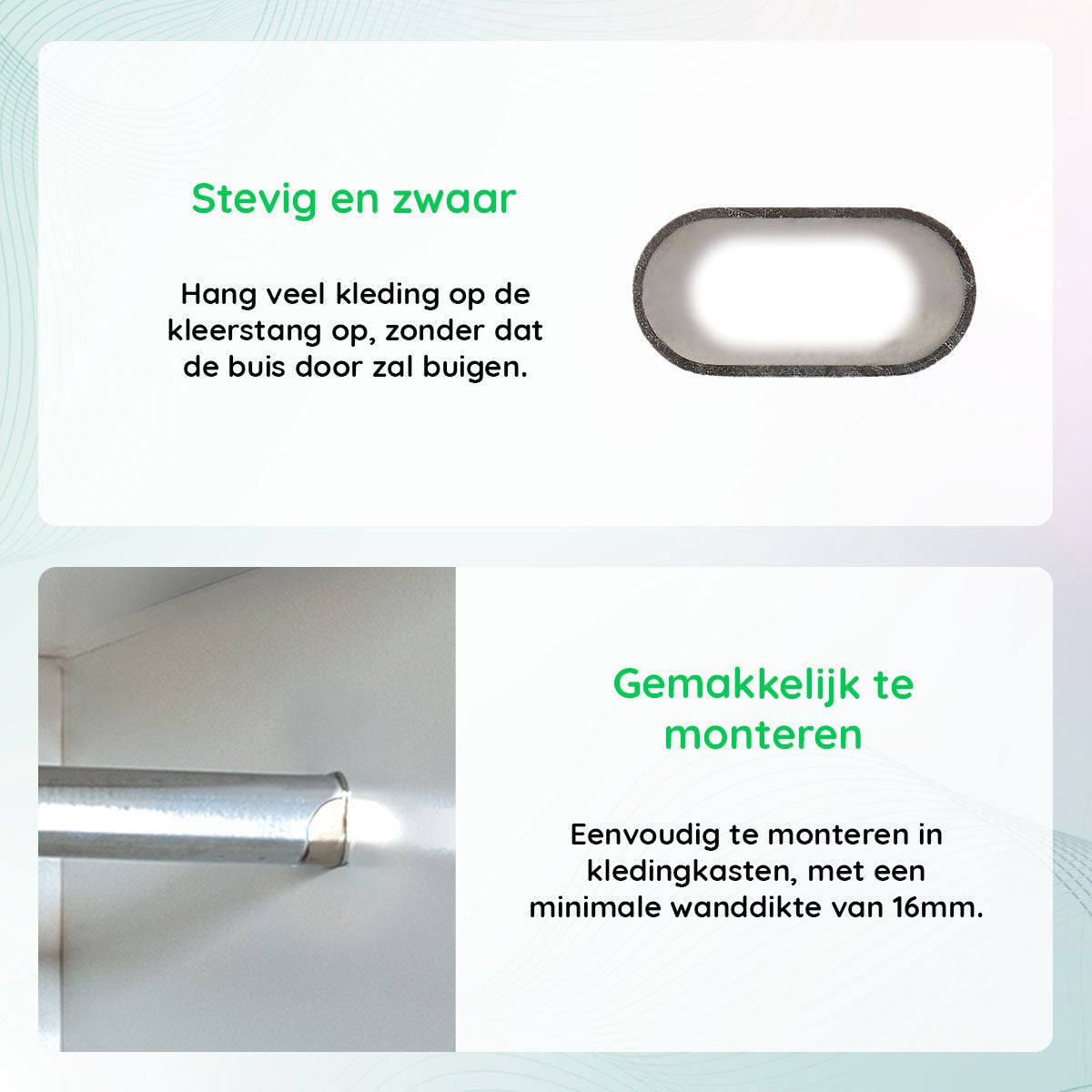 - Zware ovale kledingroede, buigt bij een gemiddelde tot zware belasting niet door