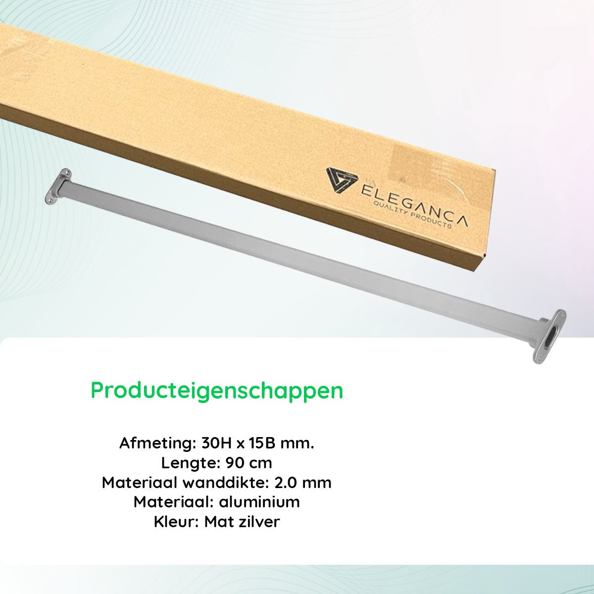 Eleganca kledingstang 90 cm - kledingroede - extra stevig aluminium - ophangen van kleding - inclusief kastroededragers en schroeven