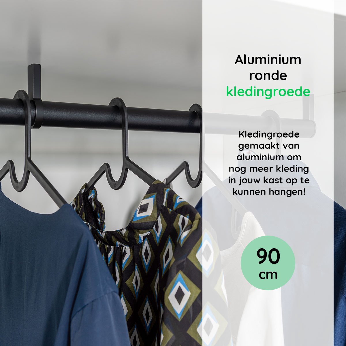 Eleganca Kledingstang 90 cm – Kledingroede – Garderobestang – Kledingstangen voor aan de muur – Inclusief kastroede dragers en schroeven - Ø28.5mm - Aluminium - Zwart
