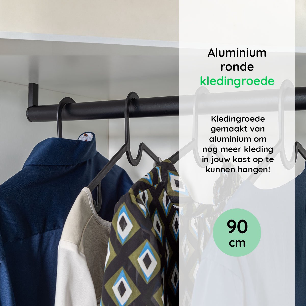 Eleganca Kledingstang – Kledingroede rond – 90 cm – Inclusief kastroede dragers en schroeven - Montage onder plank - Ø28.5mm - Aluminium - Zwart
