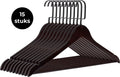 Eleganca luxe kleerhangers - Kledinghanger - 15 stuks - Behandeld hout - 45 x 26 cm - Multifunctionele kledinghanger - Gelakt - Met platte zwarte haak - Donker massief hout