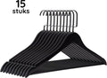 De stevige kledinghangers zijn multifunctioneel ontworpen. Zo zijn de kleerhangers uiterst geschikt voor het overzichtelijk ophangen van pakken. De broek of pantalon kan netjes op het middenstuk van de hanger worden gehangen, de blazer om de kleerhanger heen. Zo bergt u uw pak netjes en overzichtelijk in de kledingkast op. Daarnaast is de suit hanger multifunctioneel te gebruiken voor truien, t-shirts, broeken, jurken, pakken en overhemden. De hangers zijn gemaakt van massief hout en hebben een zwarte kleur. Bovendien heeft de hanger een luxe, platte zwarte haak, die mooi past bij de kleur. De kledinghangers zijn zeer compact, waardoor ze een ruimtebesparende werking hebben en door de 15 geleverde stuks bent u direct klaar om uw kledingkast overzichtelijk in te delen.