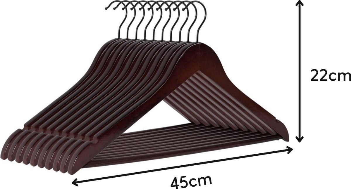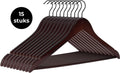 Eleganca luxe kleerhangers - Kledinghanger - 15 stuks - Behandeld hout - 45x22 x1cm - Multifunctionele kledinghanger - Gelakt - Met zwarte haak - Donker massief hout