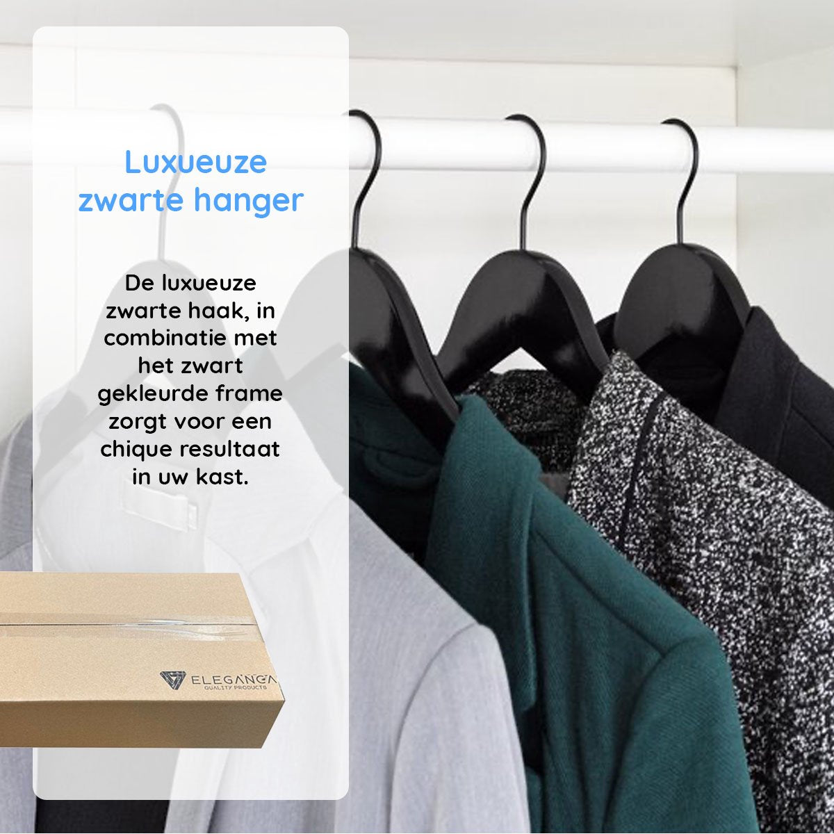 Deze luxe kledinghangers van Eleganca zijn geschikt voor het ophangen van zware kleding, zijn ruimtebesparend en uitsluitend gemaakt van stevige en betrouwbare materialen.