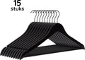 Eleganca luxe kleerhangers - Kledinghanger - 15 stuks - Behandeld hout - 45x22 x1cm - Multifunctionele kledinghanger - Gelakt - Met zwarte haak - Zwart