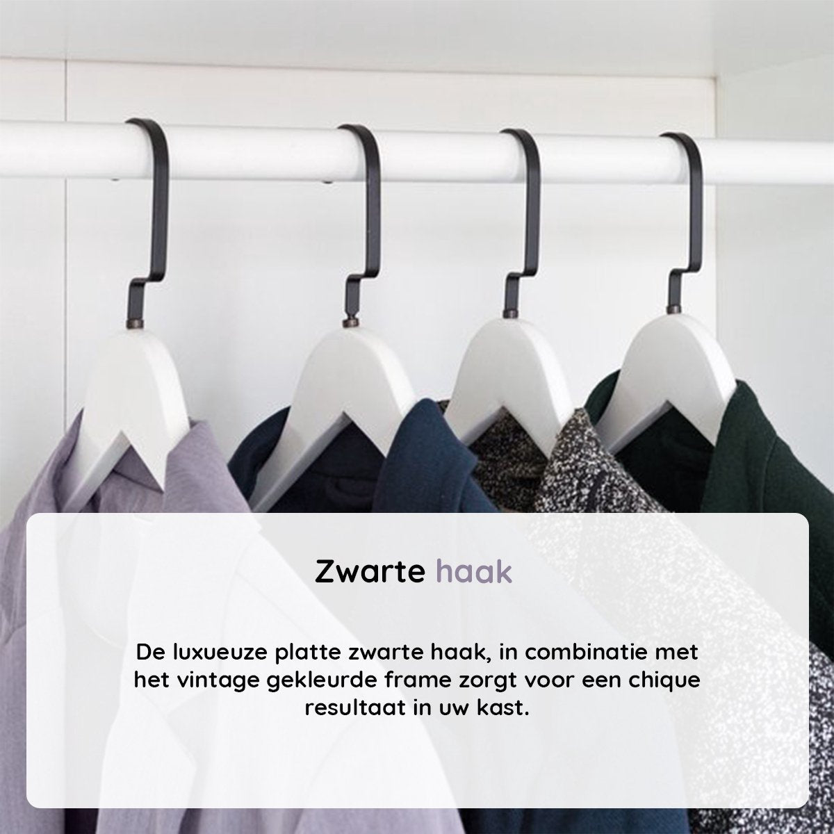 De luxueuze platte zwarte haak, in combinatie met het vintage gekleurde frame zorgt voor een chique resultaat in uw kast.