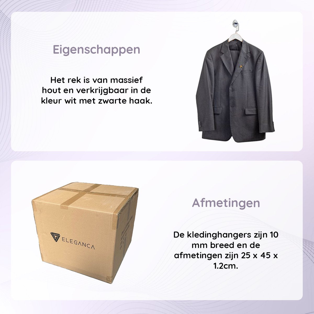 Deze luxe kledinghangers van Eleganca zijn geschikt voor het ophangen van zware kleding, zijn ruimtebesparend en uitsluitend gemaakt van stevige en betrouwbare materialen.