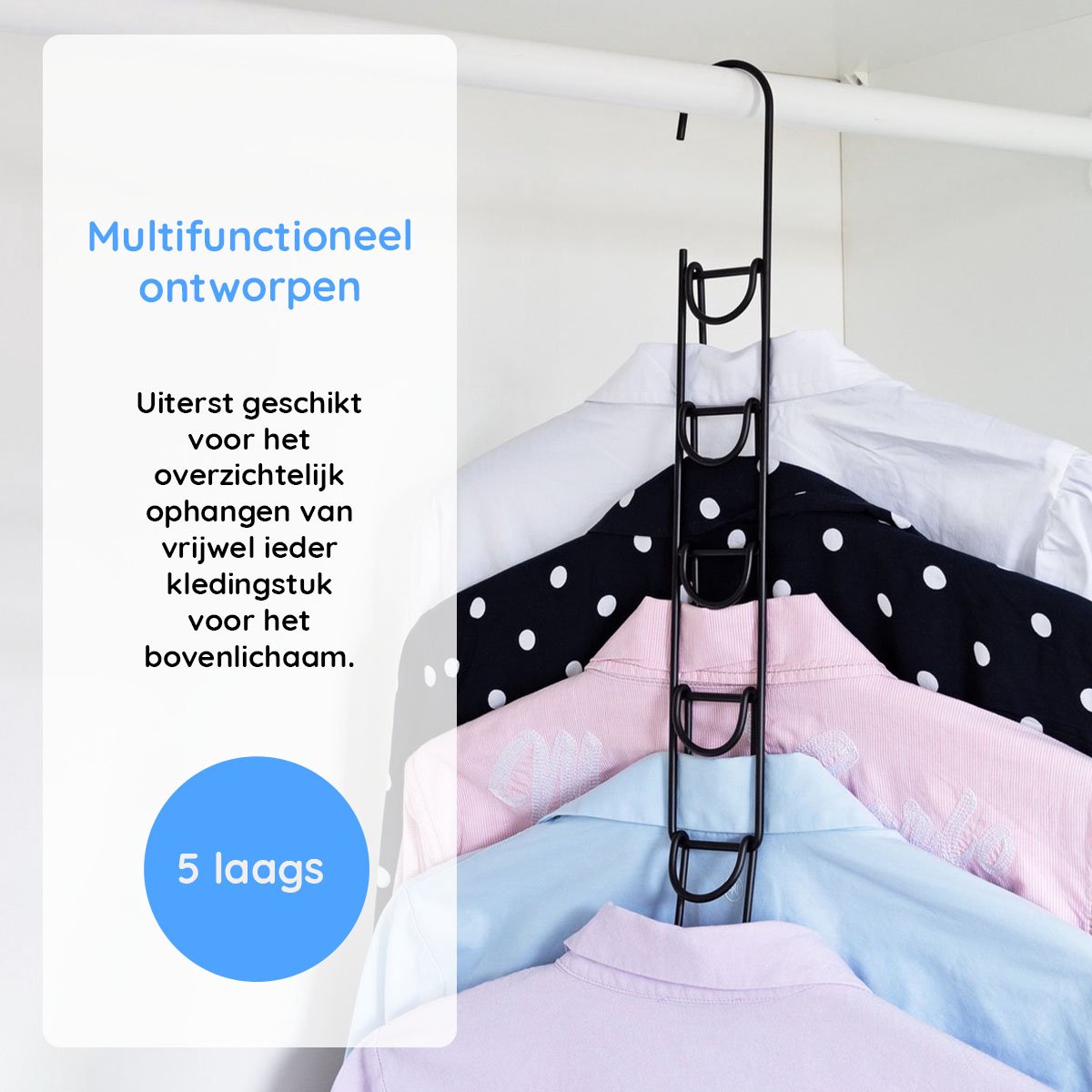 Eleganca luxe multi-functie kledinghanger 5in1 - optimaal voor ruimtebesparing - 5 laags - Kledinghanger ruimtebesparend - Ophangen van meerdere kledinghangers met kleding tegelijk - Zwart