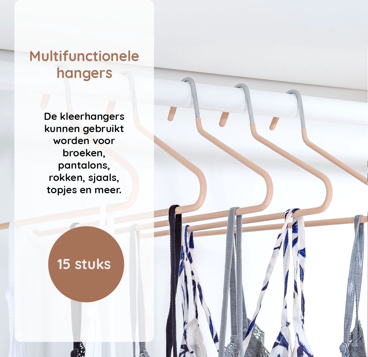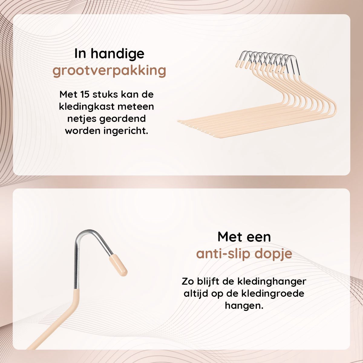 Eleganca Luxe pantalonhangers 15 stuks - Broekhangers - 35.5 x 13.2 cm - Luxe kledinghanger - Klerenhanger - Ruimtebesparend - Stevig Kunststof - Abricot