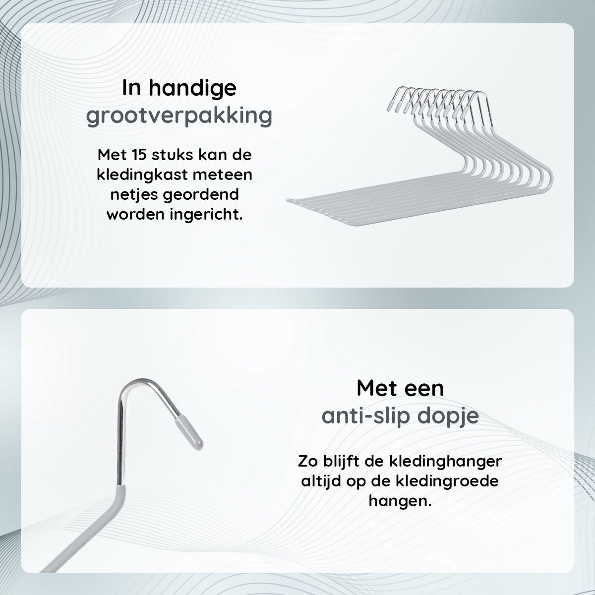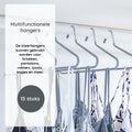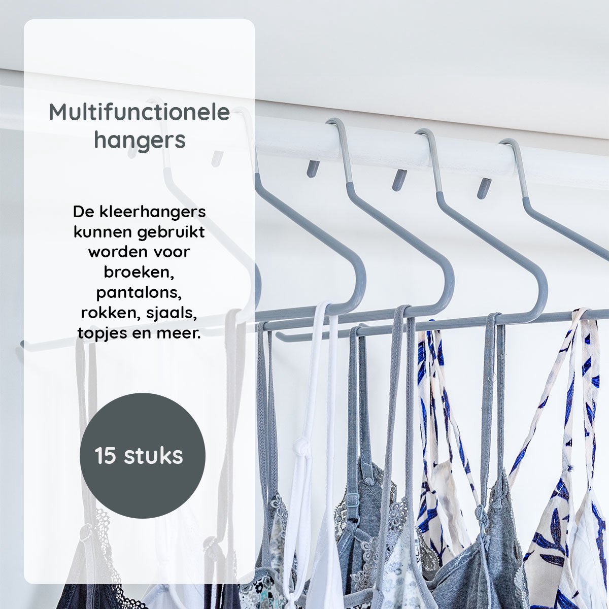 Eleganca luxe pantalonhangers 15 stuks - Broekhangers - 35.5 x 13.2 cm - Luxe kledinghanger - Klerenhanger - Ruimtebesparend - Stevig Kunststof - Grijs