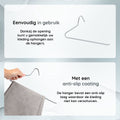 Deze luxe Eleganca kledinghanger is ruimtebesparend, vriendelijk in gebruik en gemaakt van hoge kwaliteit metaal en kunststof voor een hoge belastbaarheid