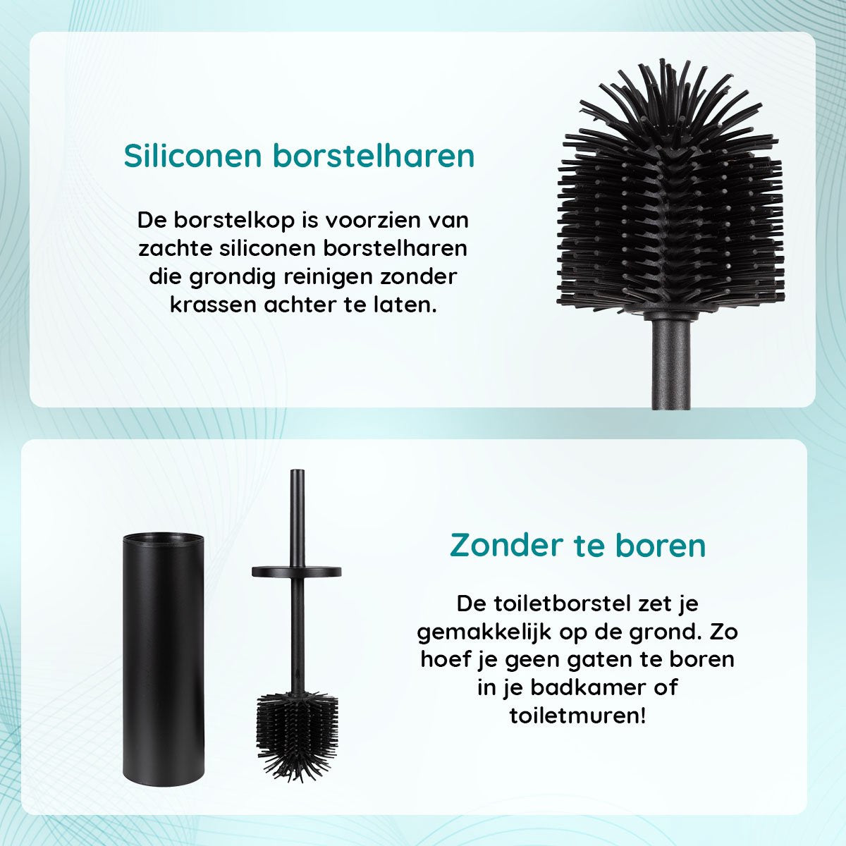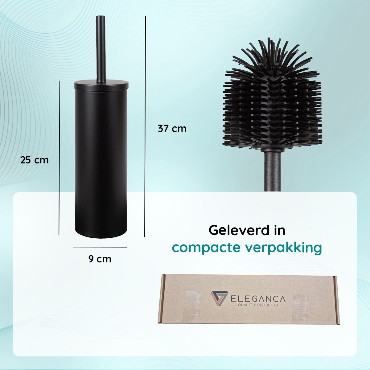Eleganca Siliconen Toiletborstel met Houder - H37 x Ø9 cm - Wc Borstel - Vrijstaand - Sneldrogend en Hygiënisch - Zwart