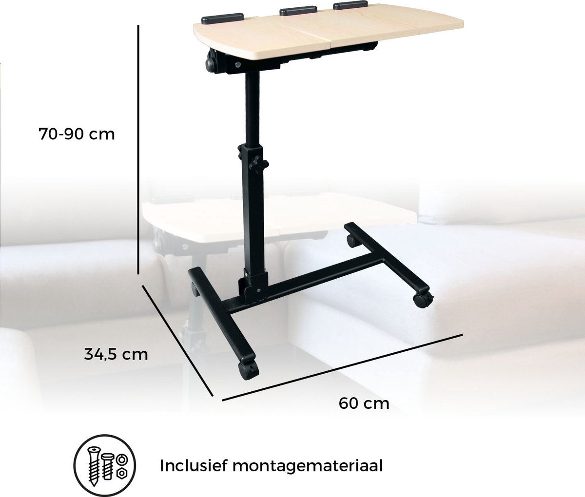 Eleganca stabureau op wielen - Bijzettafel op wielen - Verrijdbaar bureau - In hoogte verstelbaar - 70-90 cm - Zwart/Neutraal