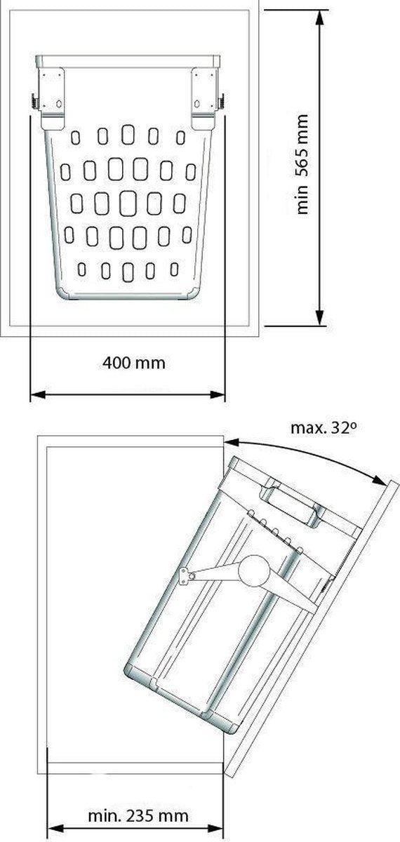 • Eenvoudige montage inbouwwasmand