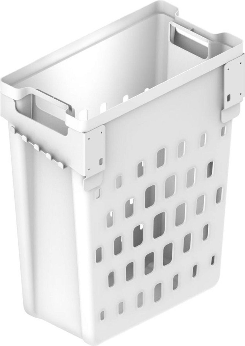 Met deze uitneembare witte wasmand van hoge kwaliteit kunststof kunt u eenvoudig en snel uw vieze was opbergen. Door het compacte formaat en het elegante design van de Eleganca wasmand past deze in ieder standaard keukenfront. Deze uitneembare wasmand is eenvoudig te monteren aan de stevige, mee geleverde metalen bevestigingsscharnieren. Hiernaast is de witte wasmand eenvoudig tot 32 graden uit de kast te trekken.