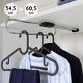 - Deze kledingstang is 34,5cm lang en nog eens 25,9cm uittrekbaar uit uw garderobe- en of kledingkast. De geschikte kastafmeting om deze garderobestang in te bouwen bedraagt een inbouwdiepte van 36,5