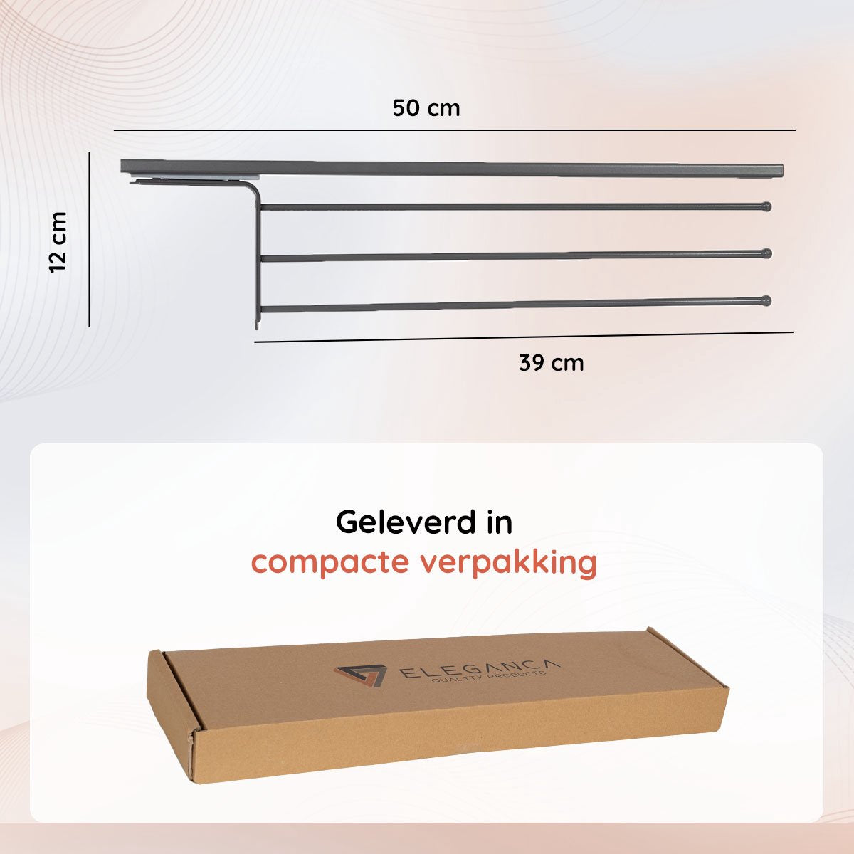 Eleganca Uittrekbaar Handdoekrek – Inbouwafmeting 13 x 50 x 4,5cm – Handdoekhouder Uitschuifbaar tot 89 cm – 3 armen – Handdoekstang Badkamer of keuken – Antraciet