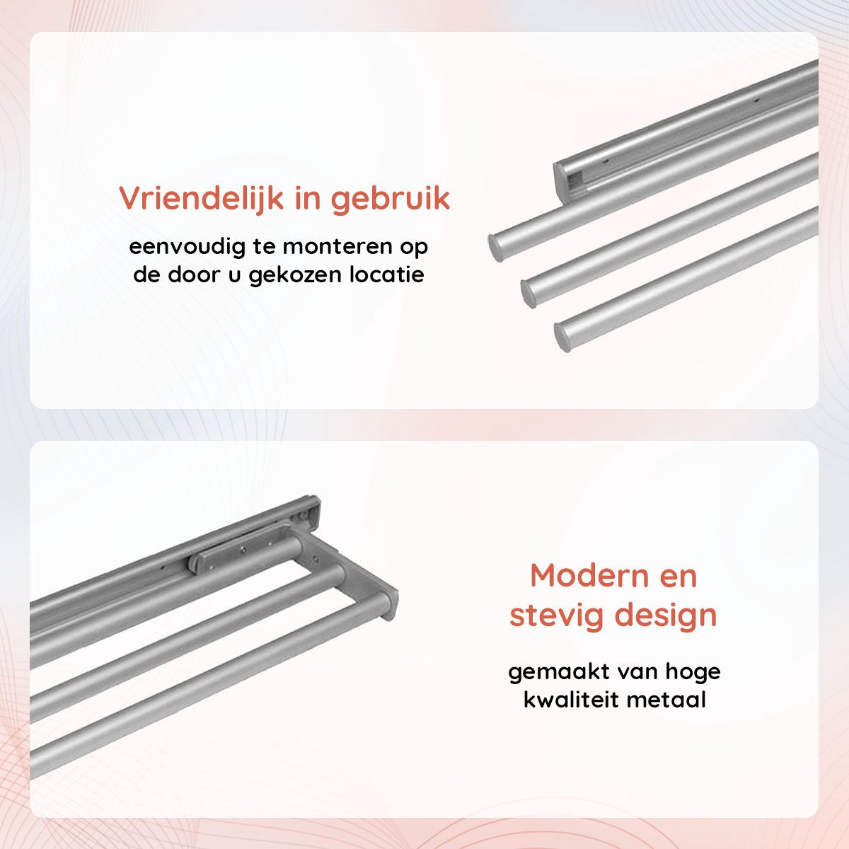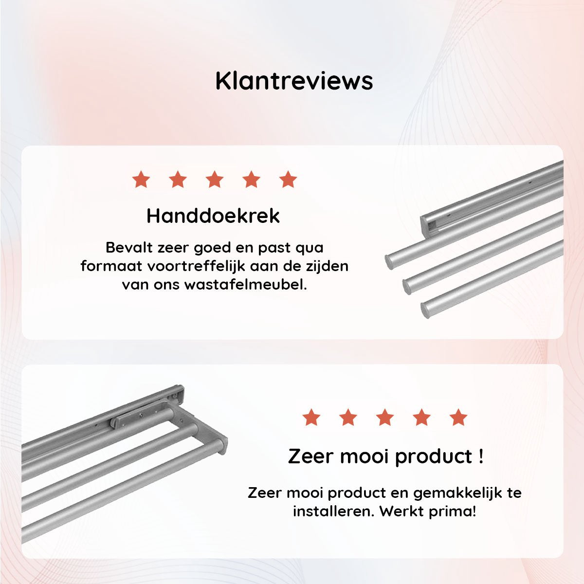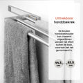 Stevige uitrekbare handoekstang die geschikt is om minimaal 3 handdoeken te kunnen vasthouden aan de armen.