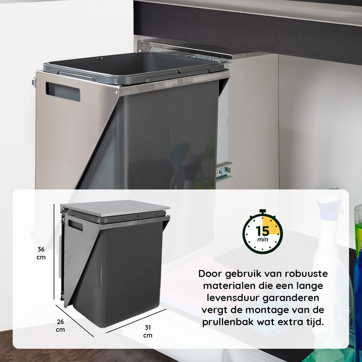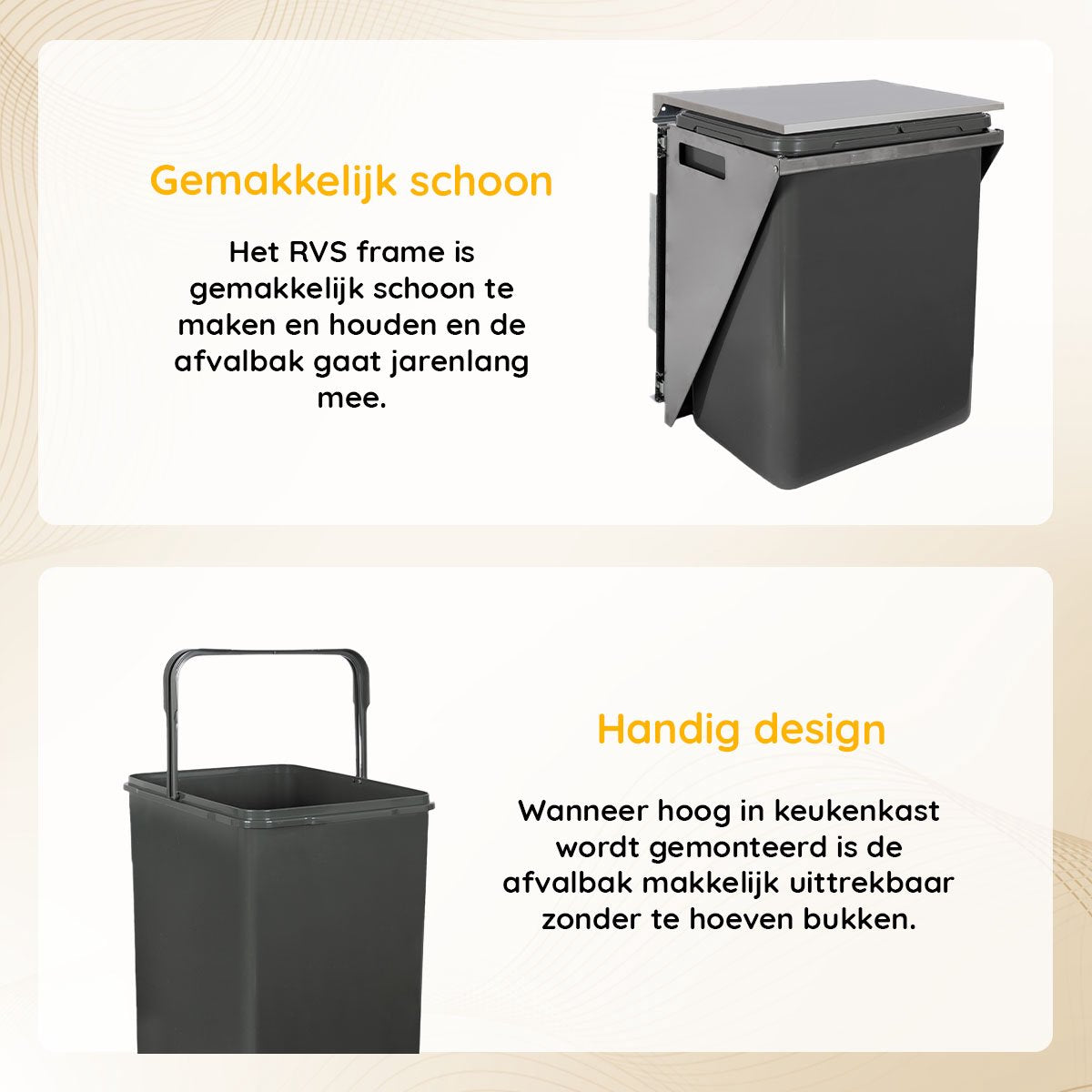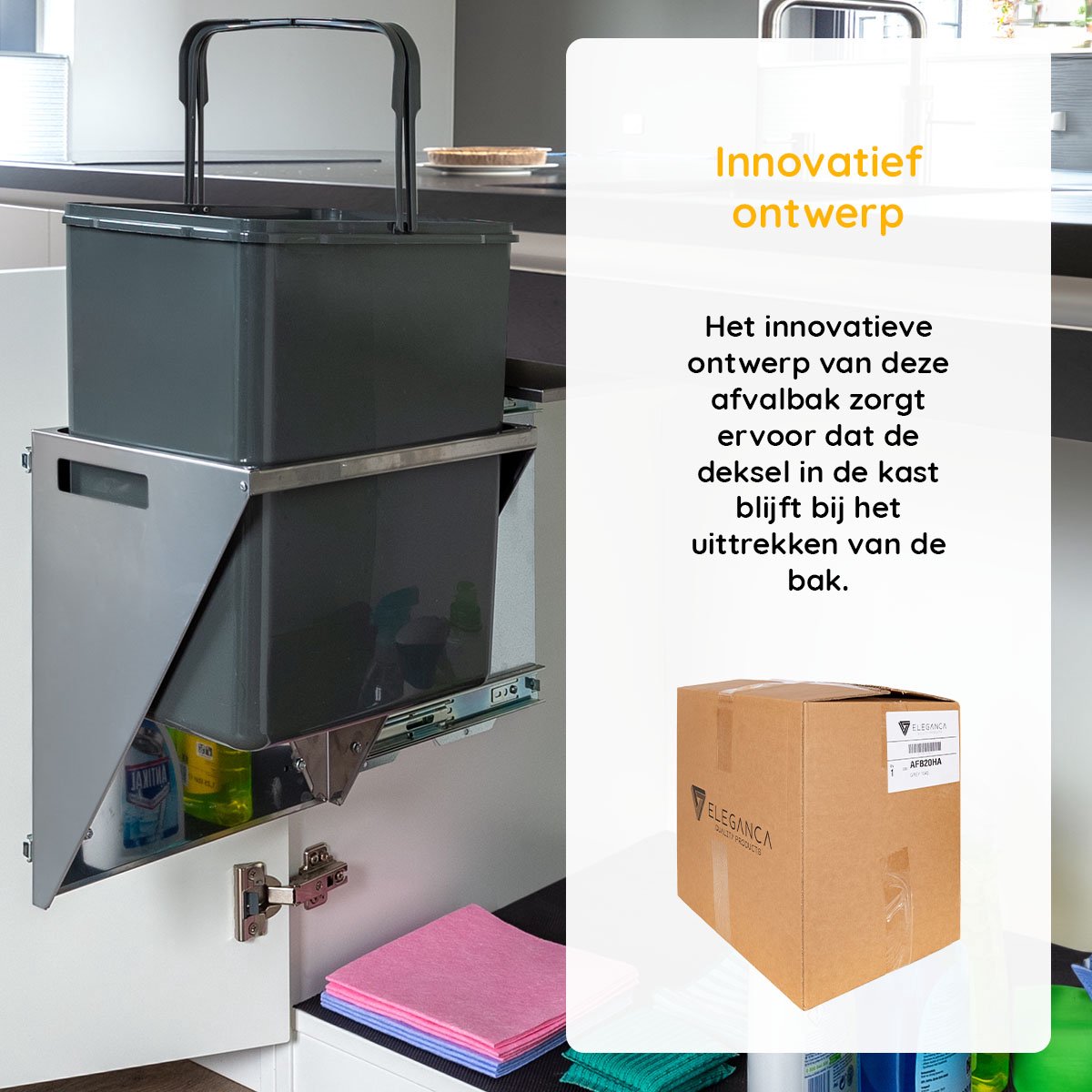 De Eleganca uittrekbare afvalbak 20 liter is een slimme en ruimtebesparende oplossing voor jouw keuken!