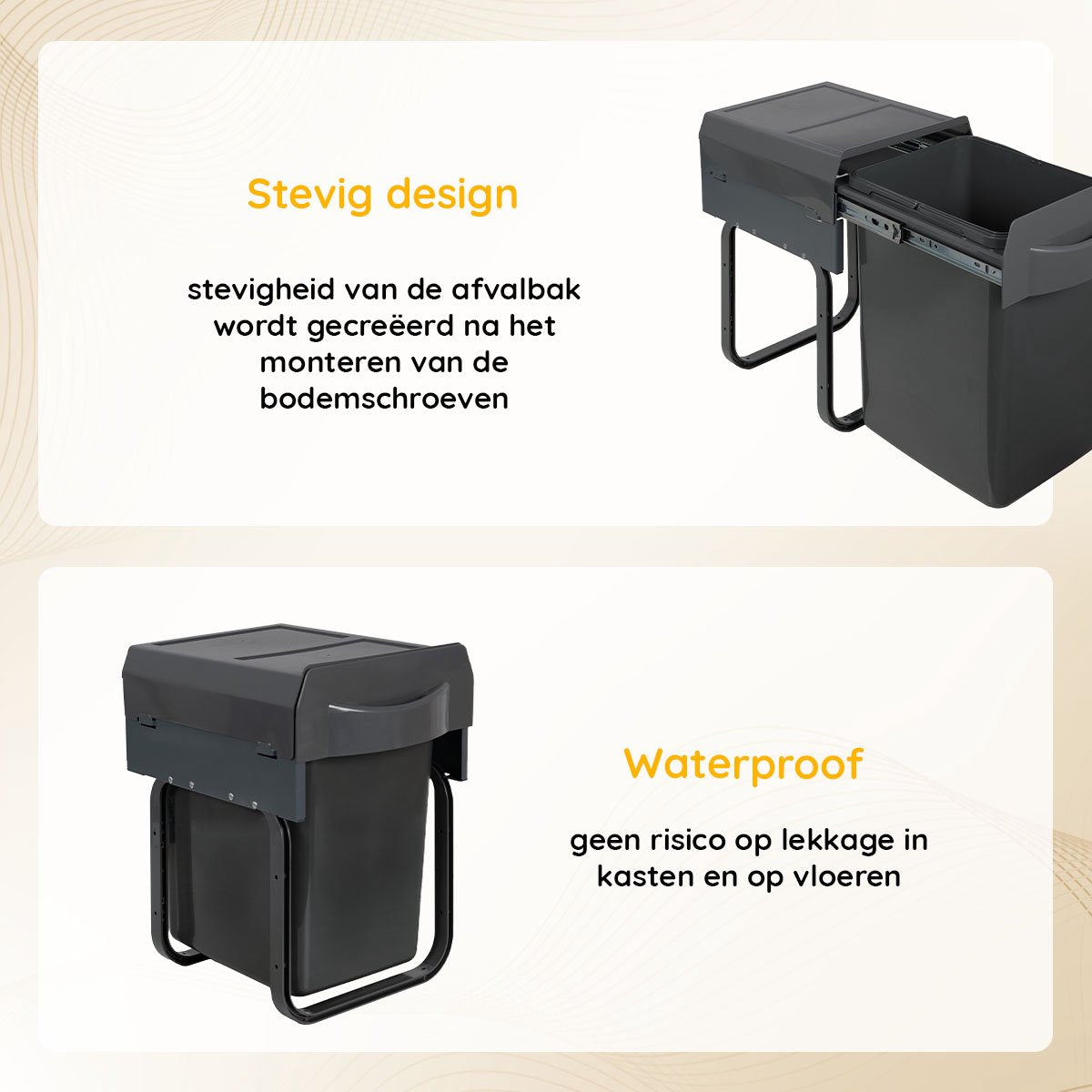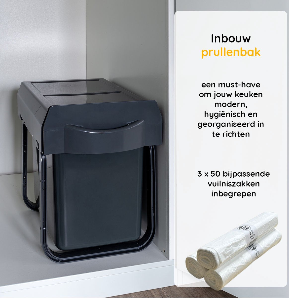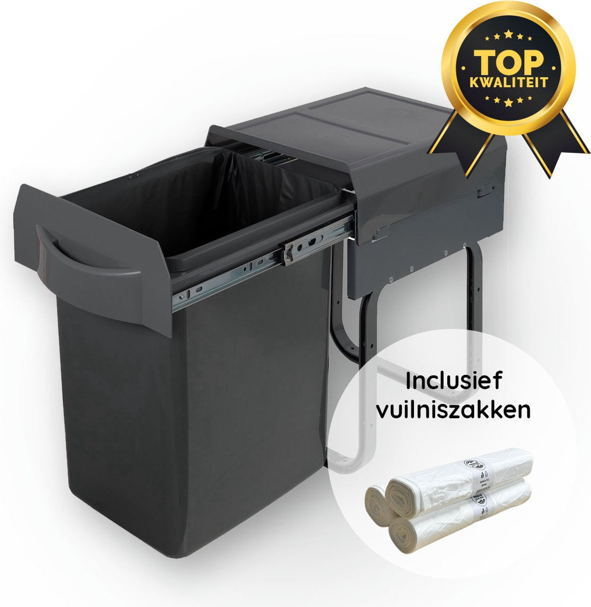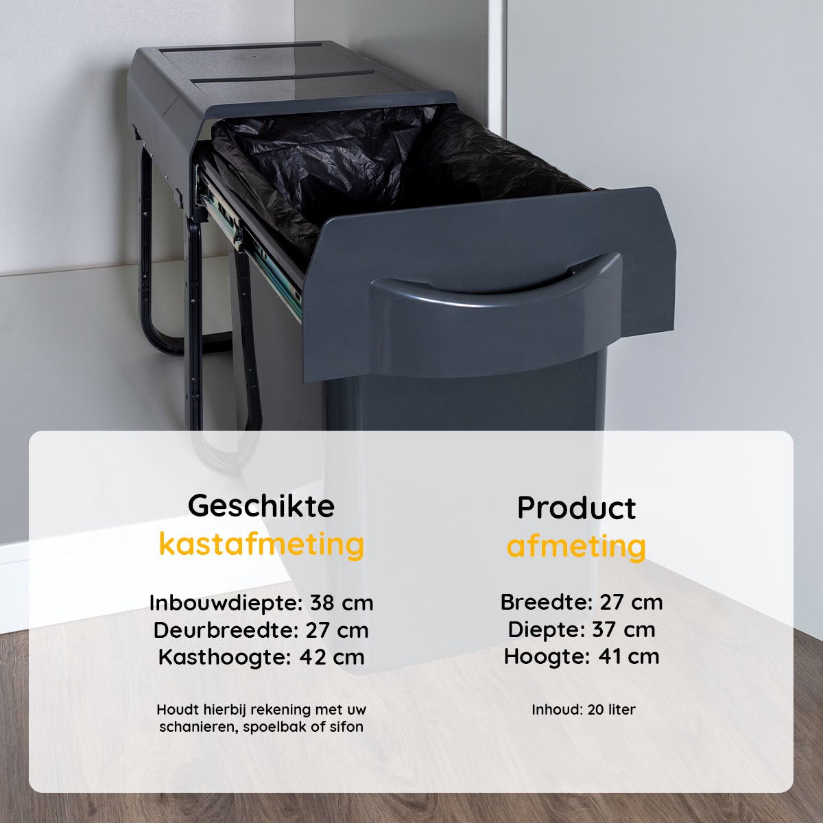 Eleganca Uittrekbare Afvalbak 20 Liter - Met vuilniszakken – Inbouw Prullenbak – Afvalemmer Afvalscheiding – Deurbreedte 27 cm, inbouwdiepte 38 cm & Kasthoogte 41 cm – Antraciet
