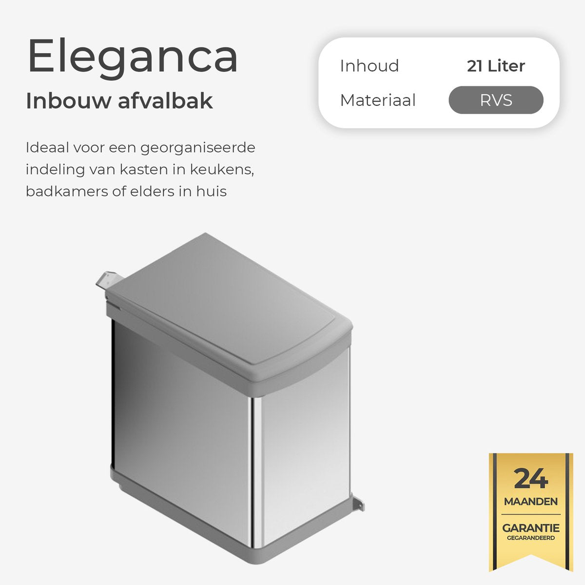 Eleganca Uittrekbare Afvalbak 21 Liter – Inbouw Prullenbak – Afvalbak Afvalscheiding - Geschikt vanaf deurbreedte 42.5 cm, inbouwdiepte 23 cm & Kasthoogte 39 cm – RVS