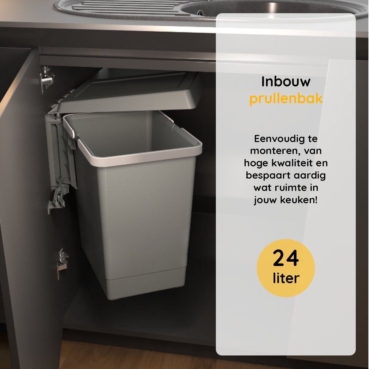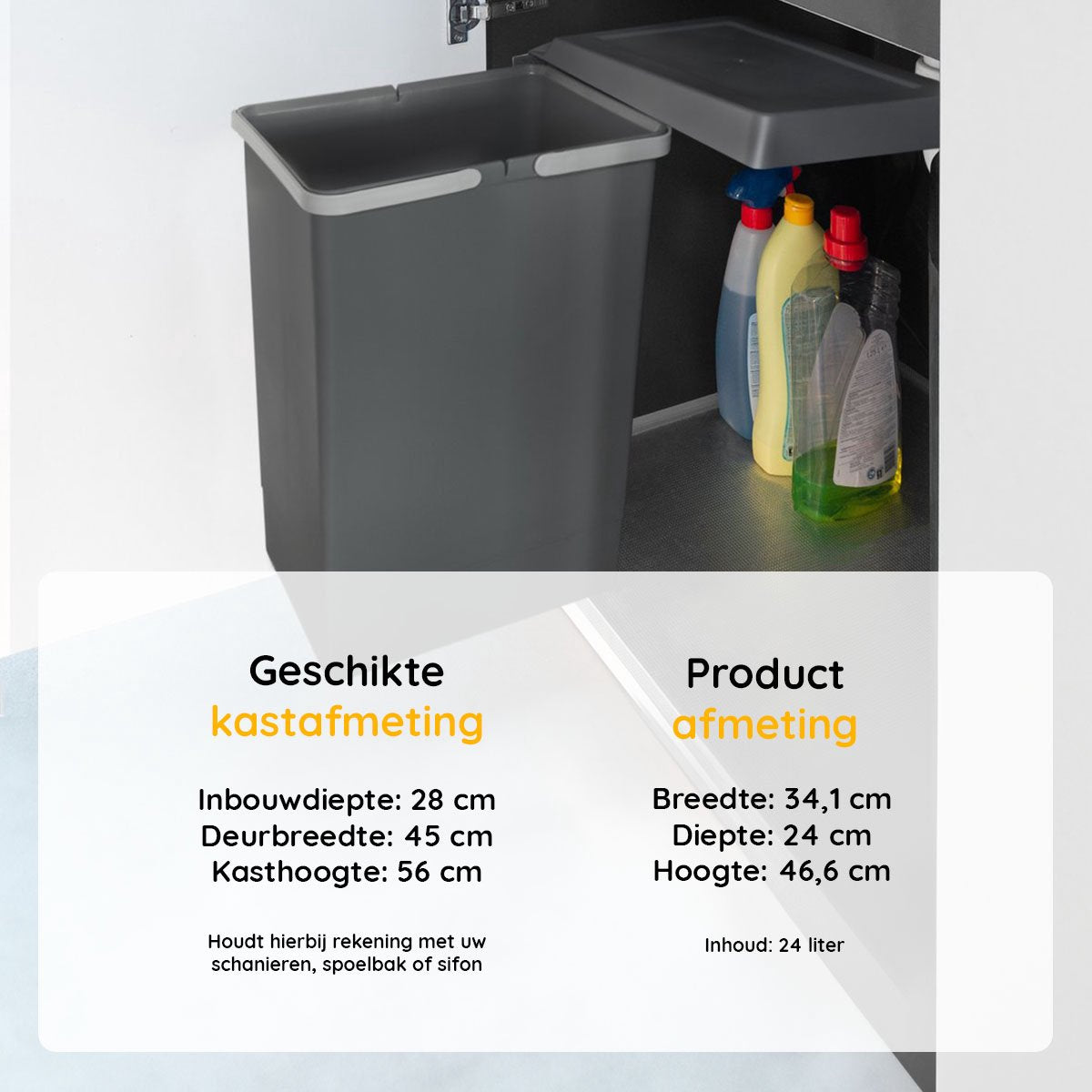 Eleganca Uittrekbare Afvalbak 24 Liter – Geschikt vanaf deurbreedte 45 cm, inbouwdiepte 28 cm & Kasthoogte 56 cm – Inbouw Prullenbak – Afvalbak Afvalscheiding - Antraciet