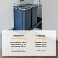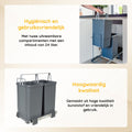 Let op: deze prullenbak past perfect in keukenkastjes met een minimale deurbreedte van 35 cm, minimale inbouwdiepte van 48 cm en een minimale kasthoogte van 55 cm.
