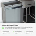 Eleganca Uittrekbare Afvalbak 40 Liter – Inbouw Afvalemmer XL – Inbouwvuilbak - Geschikt voor deurbreedte vanaf 28 cm en inbouwdiepte vanaf 47 cm – Grijs