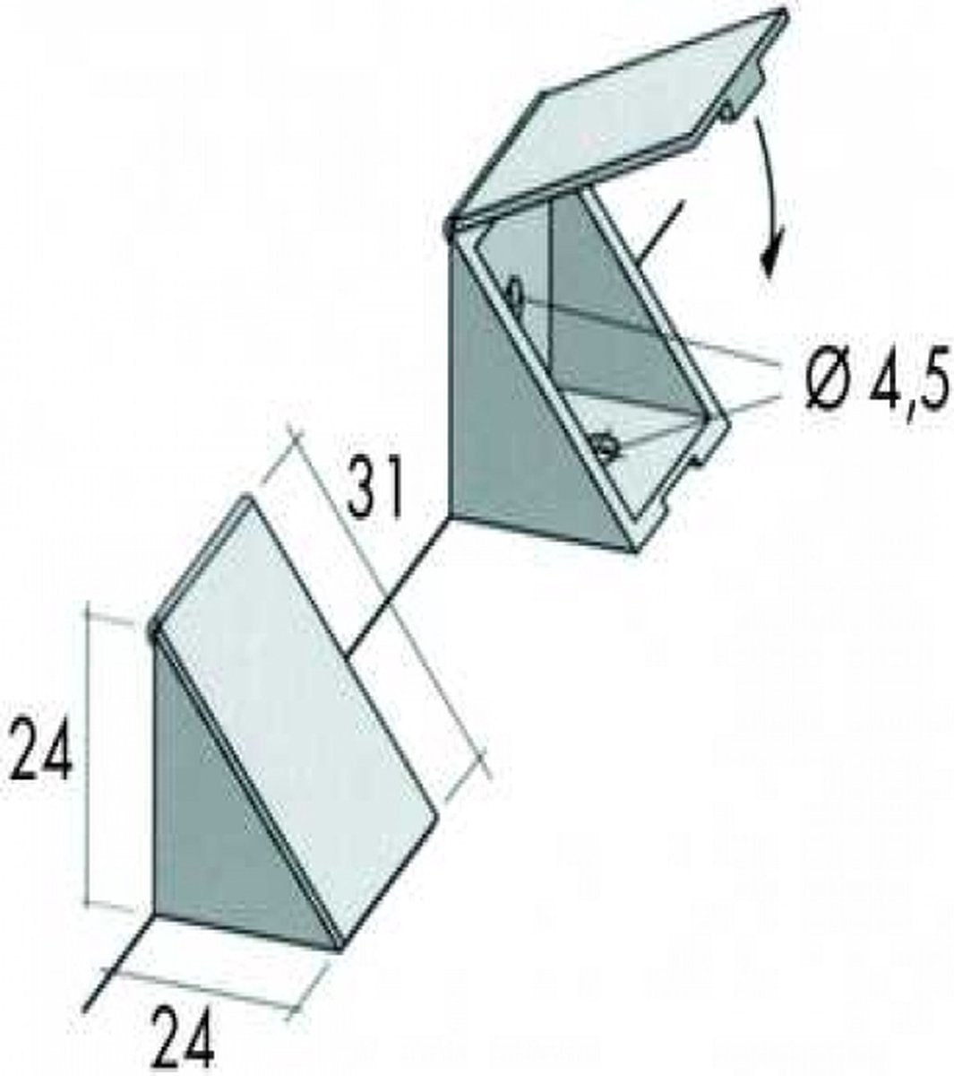 • Afdekkap kan in de hoekbeugel gedrukt worden om de montage schroeven te bedekken