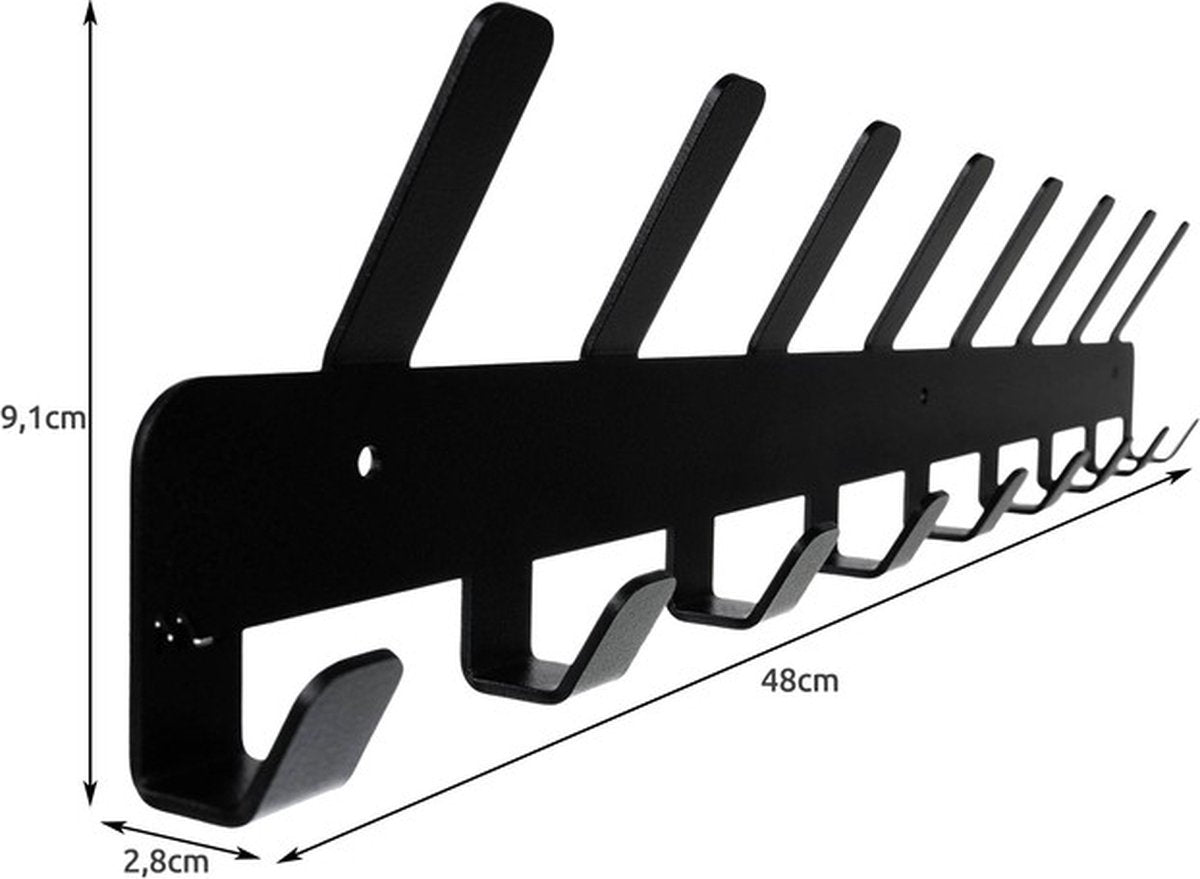 Eleganca Wandkapstok – Kapstok haken – Garderoberek – Hangend model - 17-haaks – Staal met poedercoating - 9.1 x 48 x 2.8 cm - Zwart